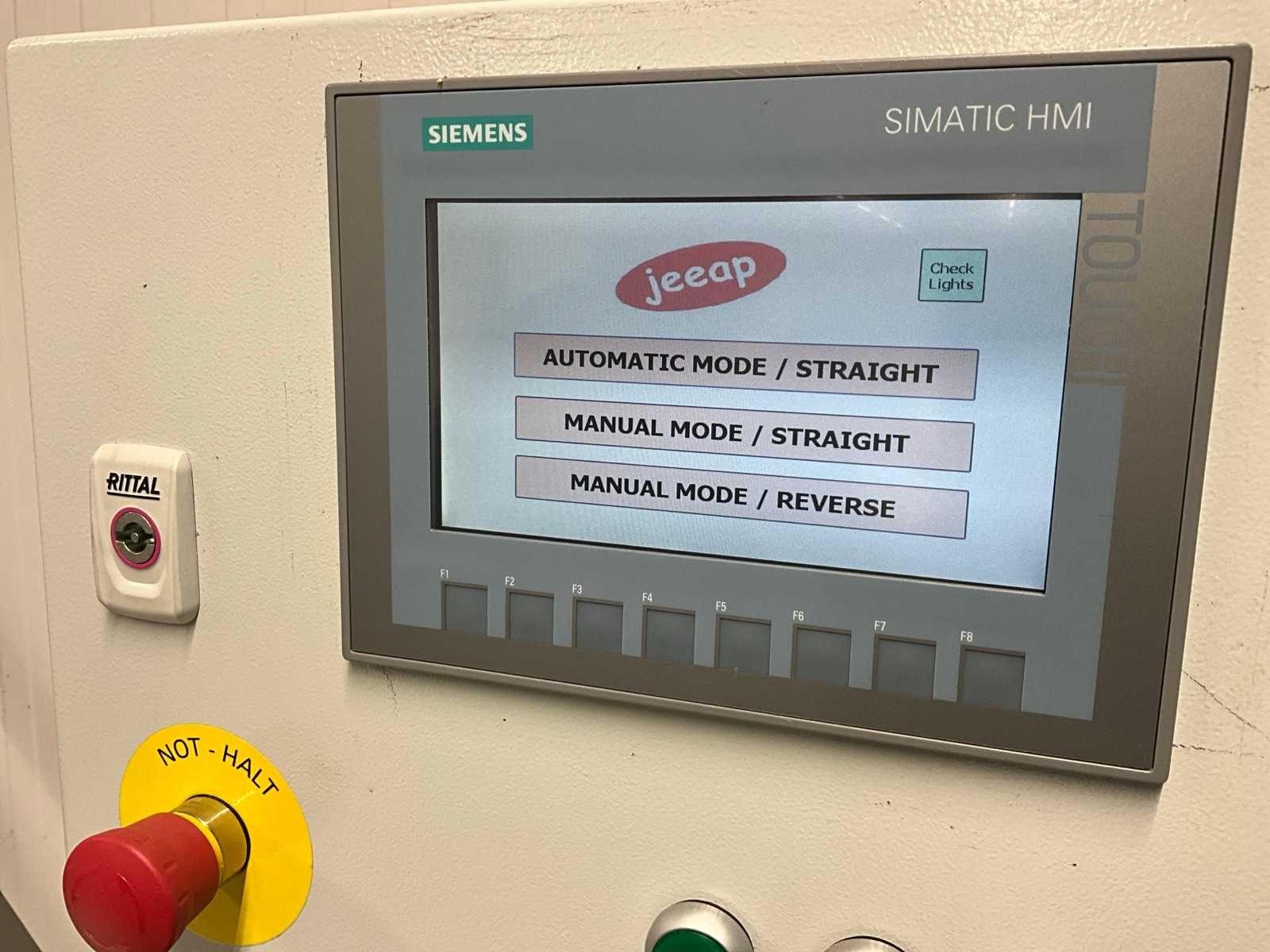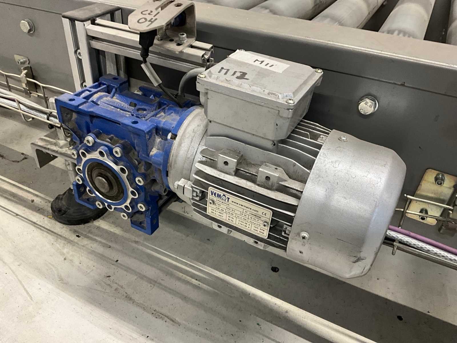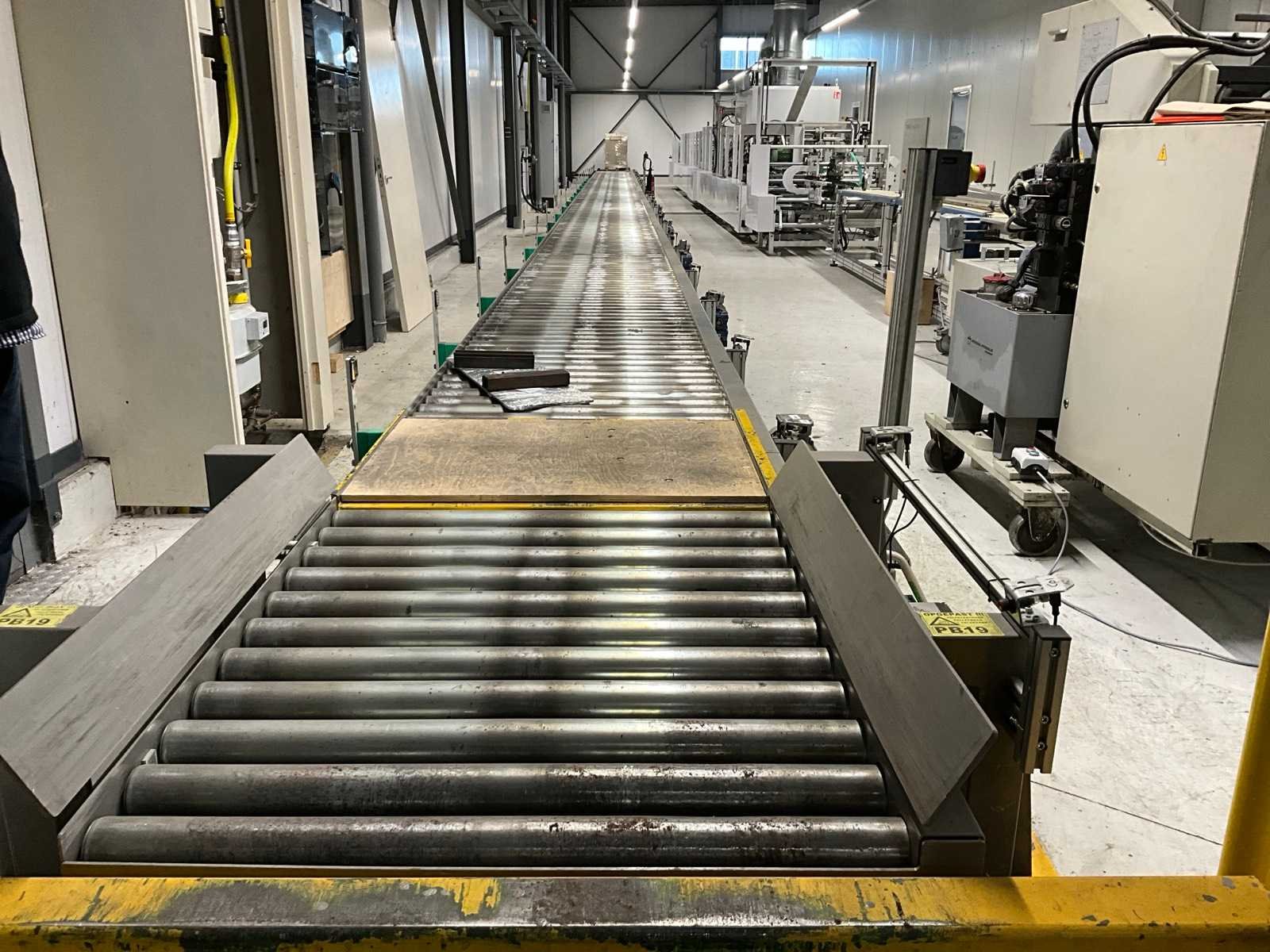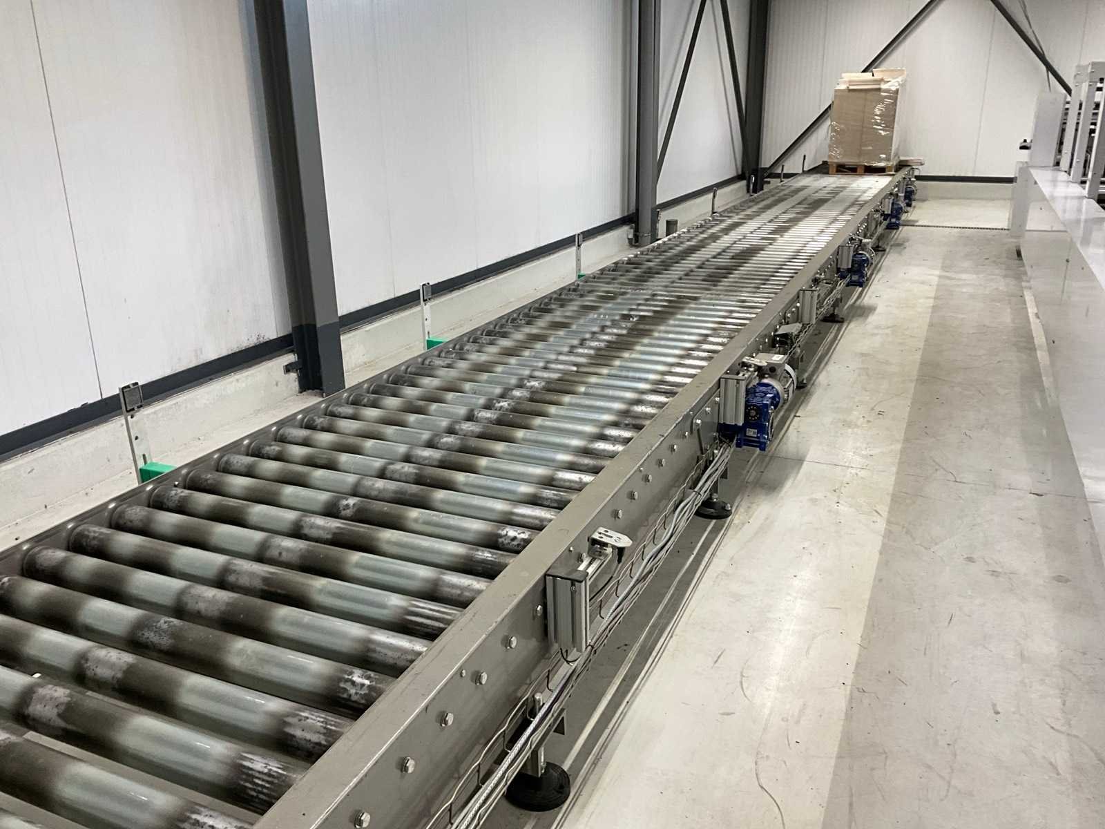 11 secties van 2850 mm lang, 2 secties van 1500 mm lang, roldiameter 80 mm, steekmaat 120 mm, totale lengte circa 34 meter, voorzien van Siemens Simatic besturingssysteem Rollenbaan afm. l: 2800mm Rollenbaan afm. b: 1020mm Aansluiting: 380V Totale afmeting L: 35000mm Totale afmeting Breedte: 1500mm Totale afmeting Hoogte: 300mm