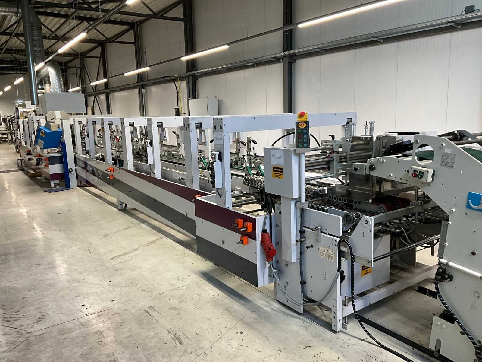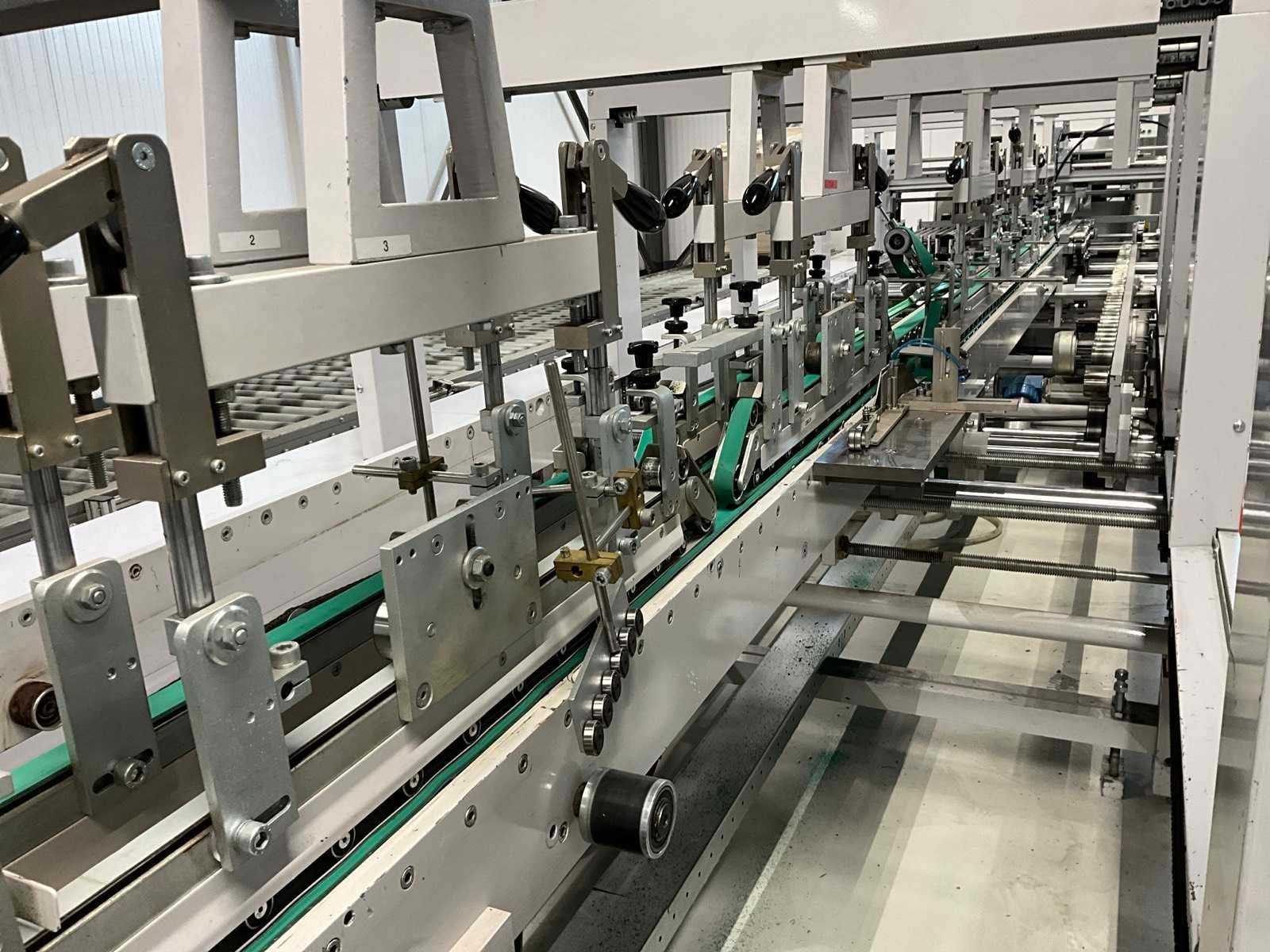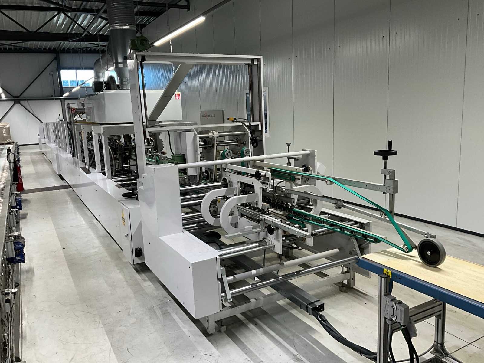 Voorzien van feeder, register, pre-folder 1, pre-folder 2, register 2, Skiver en hemming unit, burner, final fold, delivery en conveyor Merk: Omega Type: Allpro Sealpro SM130 Bouwjaar: 2008 Aansluiting: 380V Totale afmeting L: 21000mm Totale afmeting Breedte: 2500mm Totale afmeting Hoogte: 2100mm