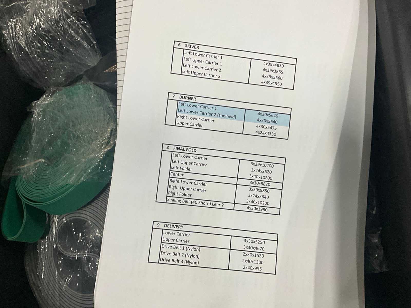 Diverse machine banden tbv Flamesealer, in 3 bakken