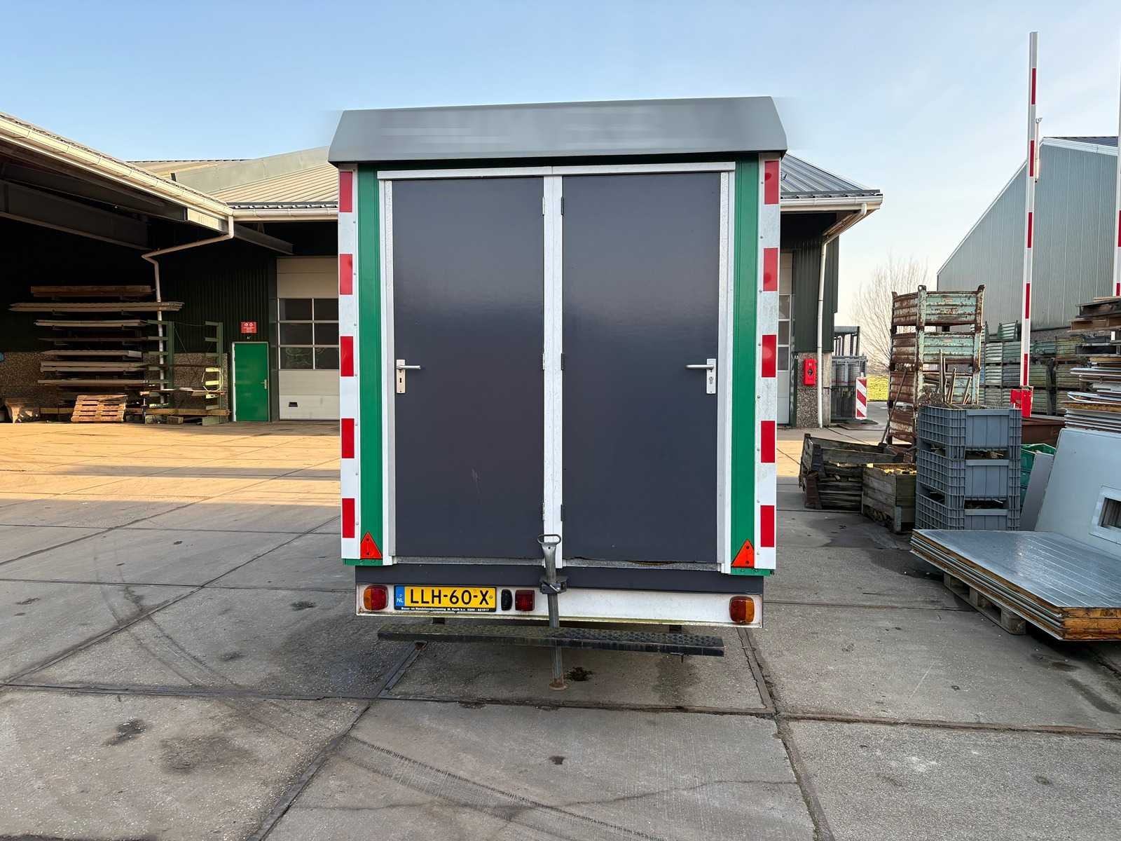 Verrijdbaar op tandemasser; kantinegedeelte; toilet; opbregruimte; wastafel; elektrische boiler; beschadiging aan plafond (gat in het dak); elektra en watervoorziening ongetest; kenteken LLH-60-X Totale afmeting L: 5000mm Totale afmeting Breedte: 2110mm Totale afmeting Hoogte: 2900mm