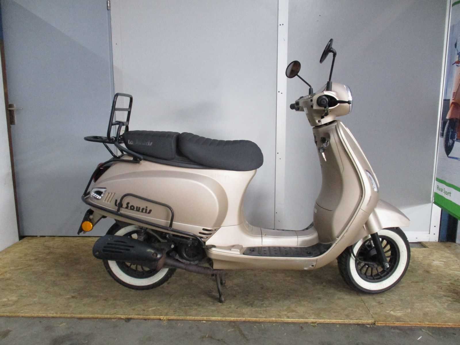 Bromscooter met 2 sleutels inclusief White Wall banden, achter klaprek, achter zijbeugelset, dagrijverlichting en gescheiden zadel. Motor loopt, voorvork ontzet. Staat van onderhoud onbekend, Merk: La Souris Sourini R Limited Model: Bromscooter Snelheid: 45km/h Kenteken: FPK-18-R Datum eerste toelating: 07-09-2023 Bouwjaar: 07-09-2023 Transmissie: automaat Brandstof: benzine Kleur: n.v.t. Afgelezen kilometerstand: 2805km
