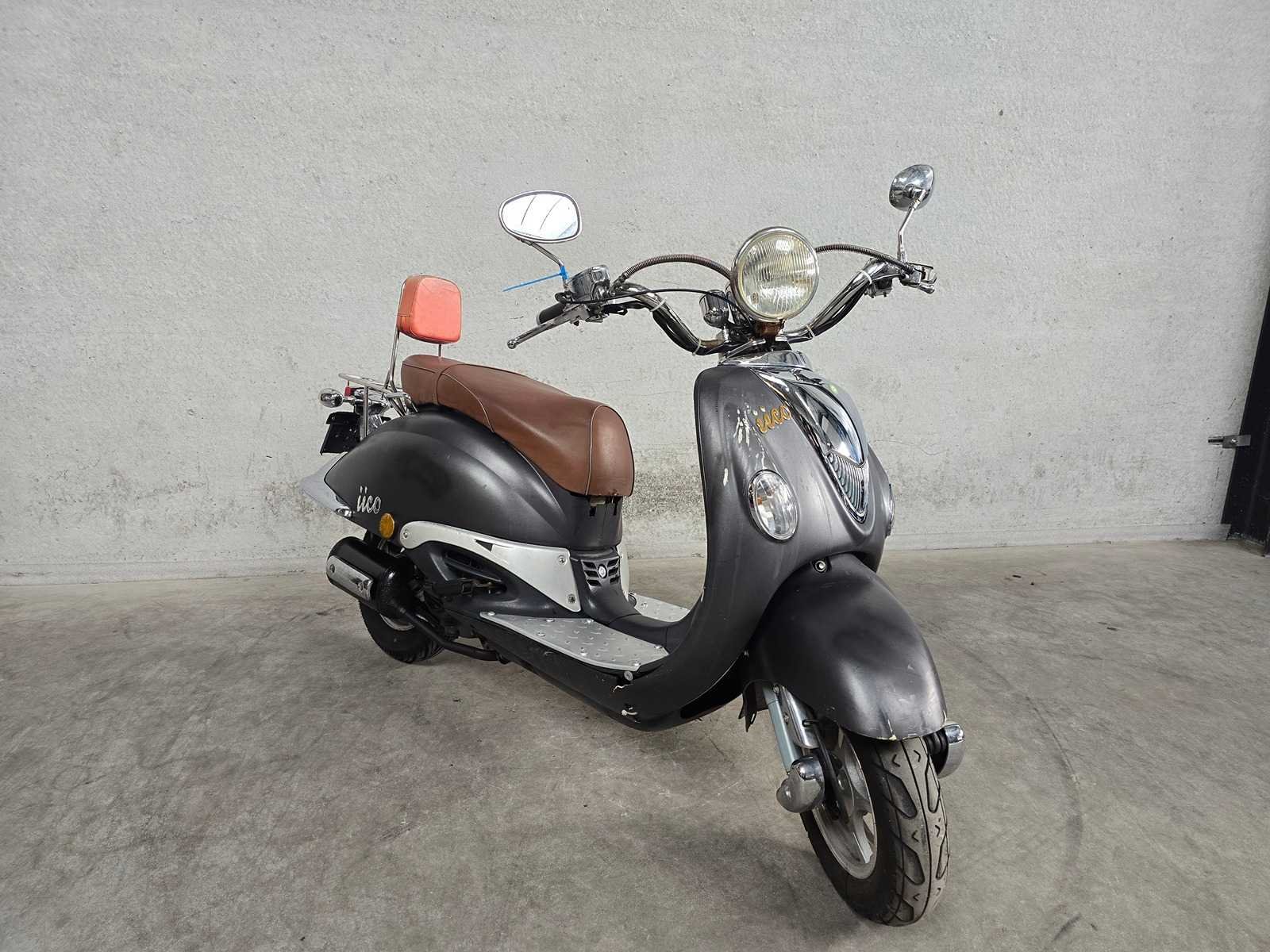 1 sleutel - lang stilgestaan , loopt even op remreiniger - technische / onderhoud staat onbekend - Merk: IIco Model: Snorscooter Type: Foggia Retro Kenteken: F569PP Datum eerste toelating: 23-07-2013 Transmissie: aut. Brandstof: benzine Kleur: grijs Bouwjaar: 2013