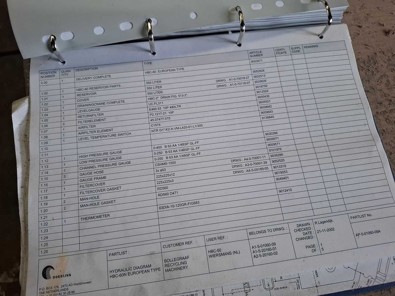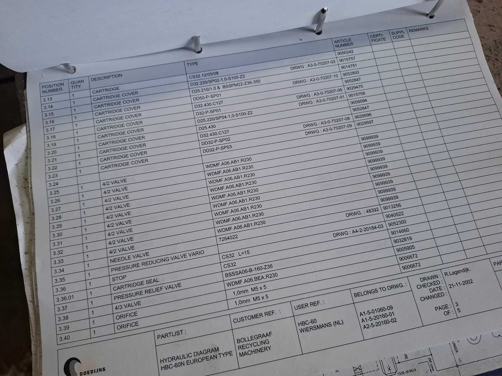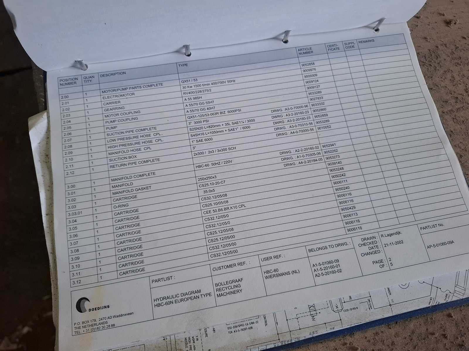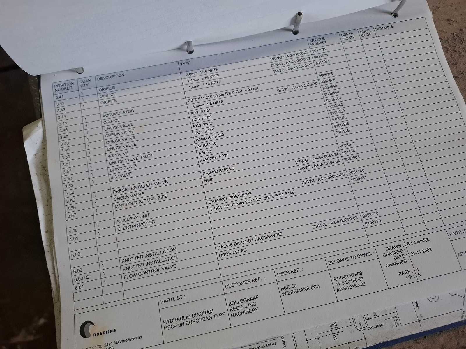 Complete persinstallatie bestaande uit volautomatische balenpers Bollegraaf HBC-60A (30kW) uit 2003 met kettingband aanvoerband HBT-600/1.400 * 19.486 - 30/15gr, draadstation en plastic ventiel. Voor horizontaal en verticaal inbinden. Afgelezen urenstand: ca 3.492 uur. Lengte balenpers ca 9 meter, lengte aanvoerlijn: ca 17 meter. Draadstation dient gereviseerd te worden. Demontage dient door koper te worden uitgevoerd. Datum ophalen in overleg binnen 1 maand na sluiting veiling. Voor demontage dient het damwandprofiel wand te worden gedemonteerd. Koper dient de wand weer wind en water dicht terug te plaatsen. Merk: Bollegraaf Type: HBC-60 Bouwjaar: 2003 Serienummer: W220046 Balenpers type: true Folie / kartonpers type: true