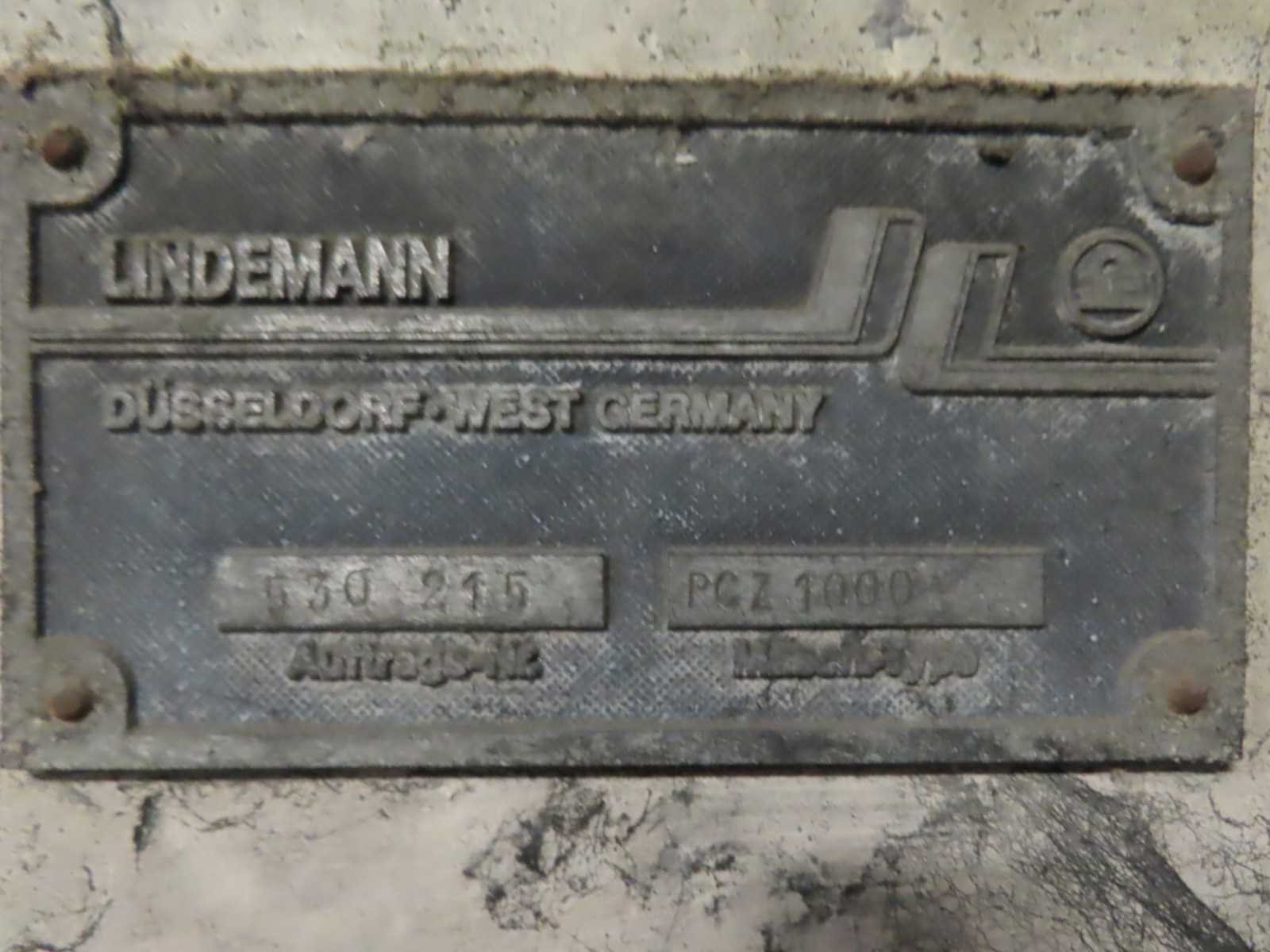 400V, volgens opgave werkend afgekoppeld, afmeting circa: 270x500x200 cm (hxbxd). Merk: Lindemann Type: PCZ 1000 Serienummer: 530215