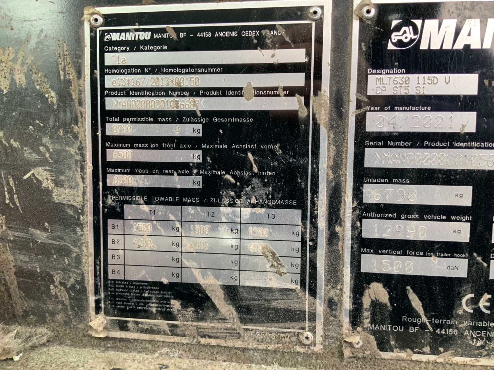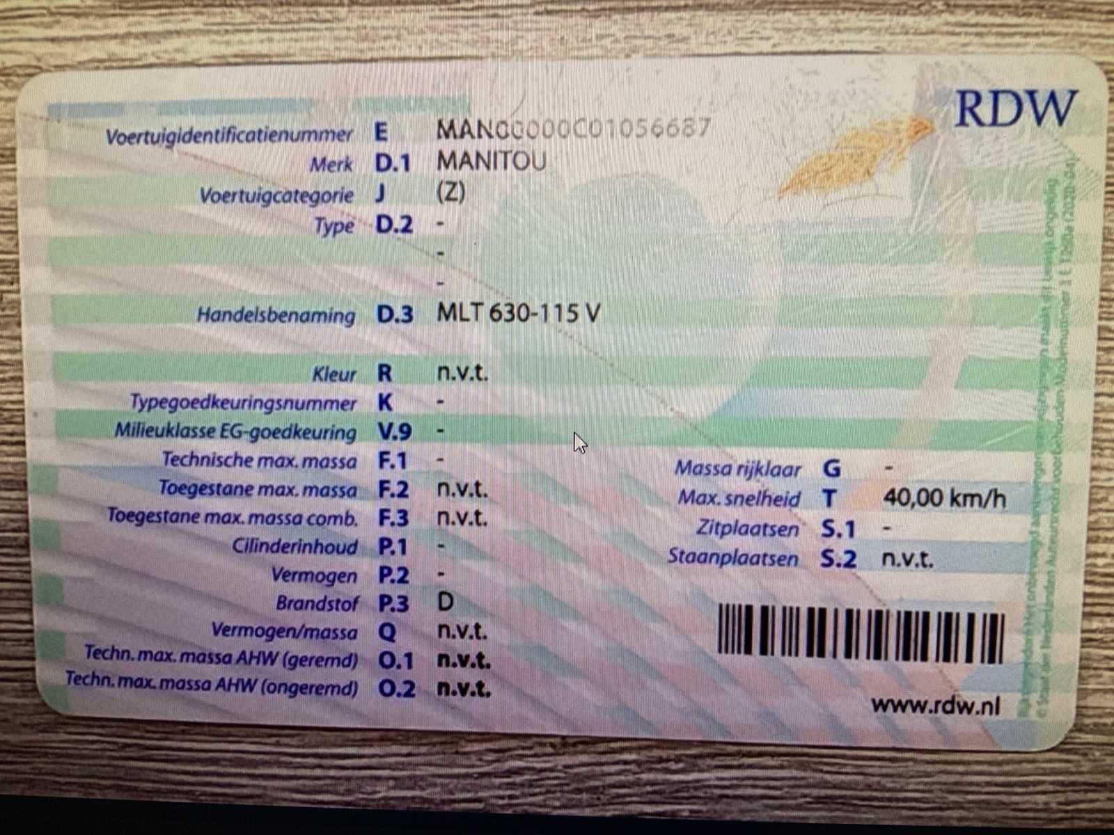 Uitgevoerd met Deutz stage 5 motor, 1e eigenaar en complete onderhoudshistorie en CE conformiteitsdocument. Zie ook bijgevoegde brochure voor meer specificaties, let op: deze machine staat op locatie in Schijndel. Merk: Manitou Type: MLT630-115DVCP Bouwjaar: 2021 Serienummer: MAN00000001056687 Kenteken: THV-05-L Motorvermogen (kW): 85kW Hefvermogen: 3000kg Hefhoogte: 6100mm Cabine: true Vol rubber banden: true Afgelezen urenstand: 7165 Eigen gewicht: 6790kg Totale afmeting L: 4780mm Totale afmeting Breedte: 2130mm Totale afmeting Hoogte: 2340mm