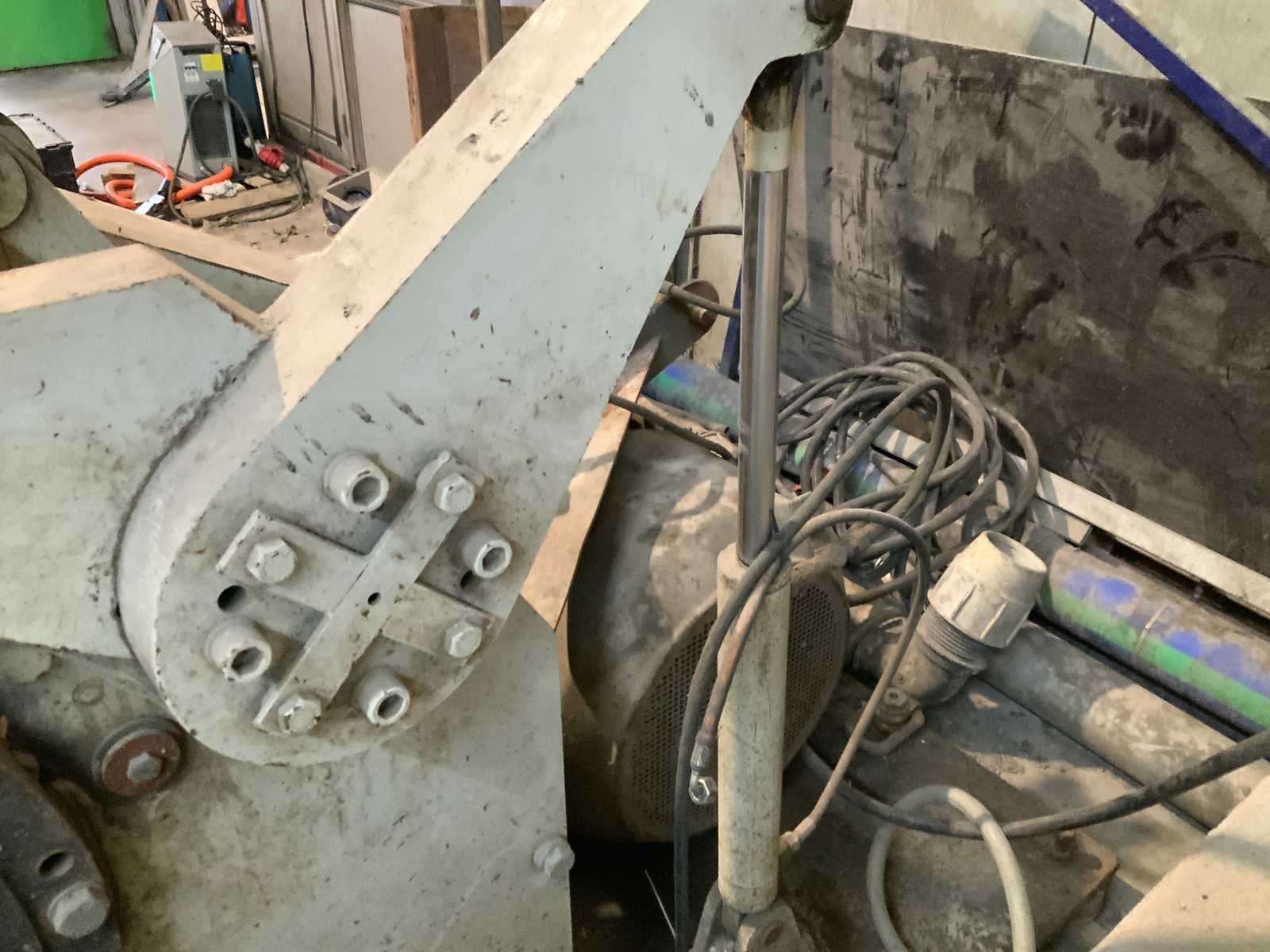 Uitgevoerd met hydropack voor het open en sluiten van de bijbehorende vultrechter, machine is werkend weggezet wordt geleverd met veel extra messen en slijpplaten. Afmeting machine lxbxh: 240x190x140 cm afmeting vultrechter lxbxh: 115x105x225 cm en aparte Hefcom hydropomp. Merk: Cumberland