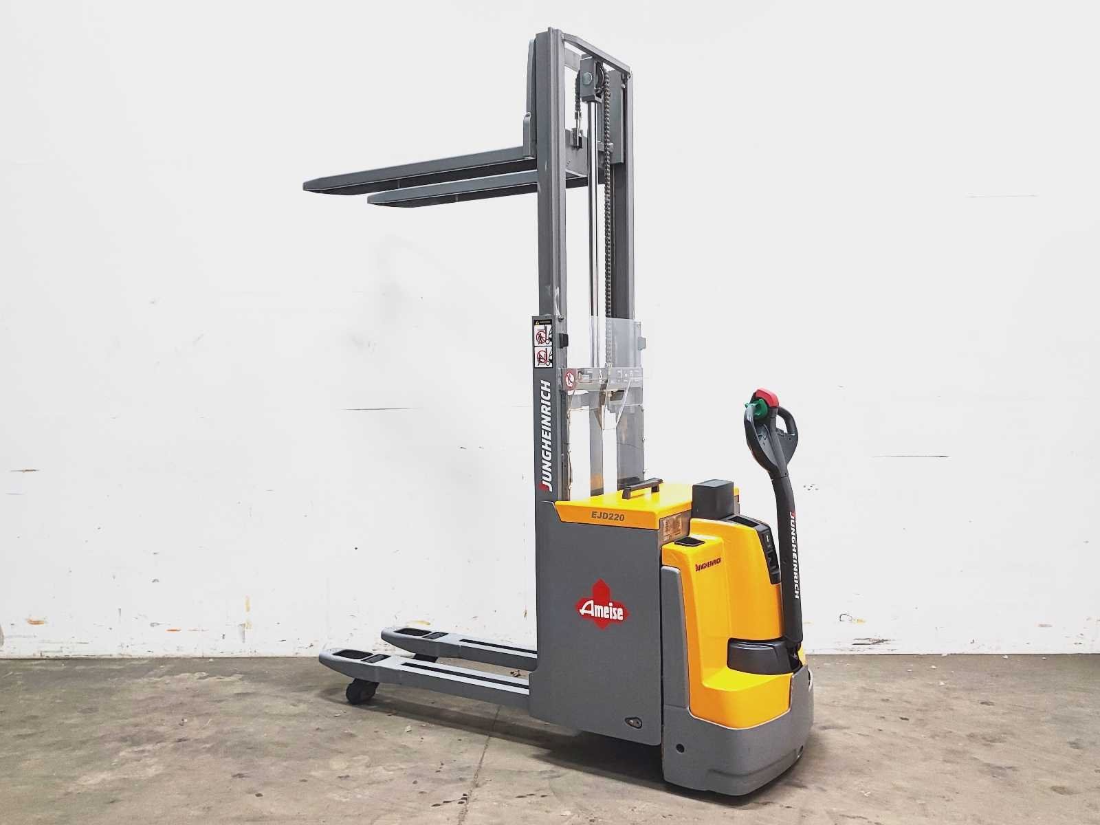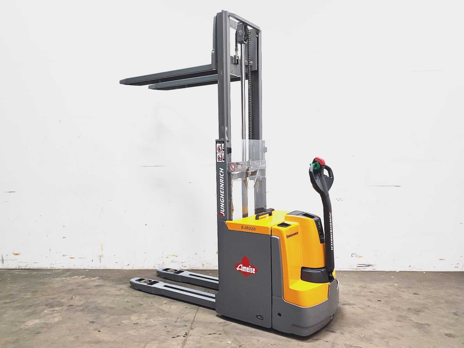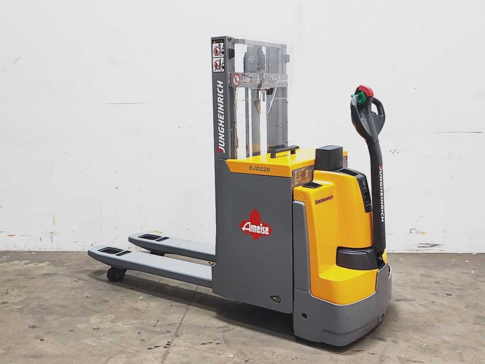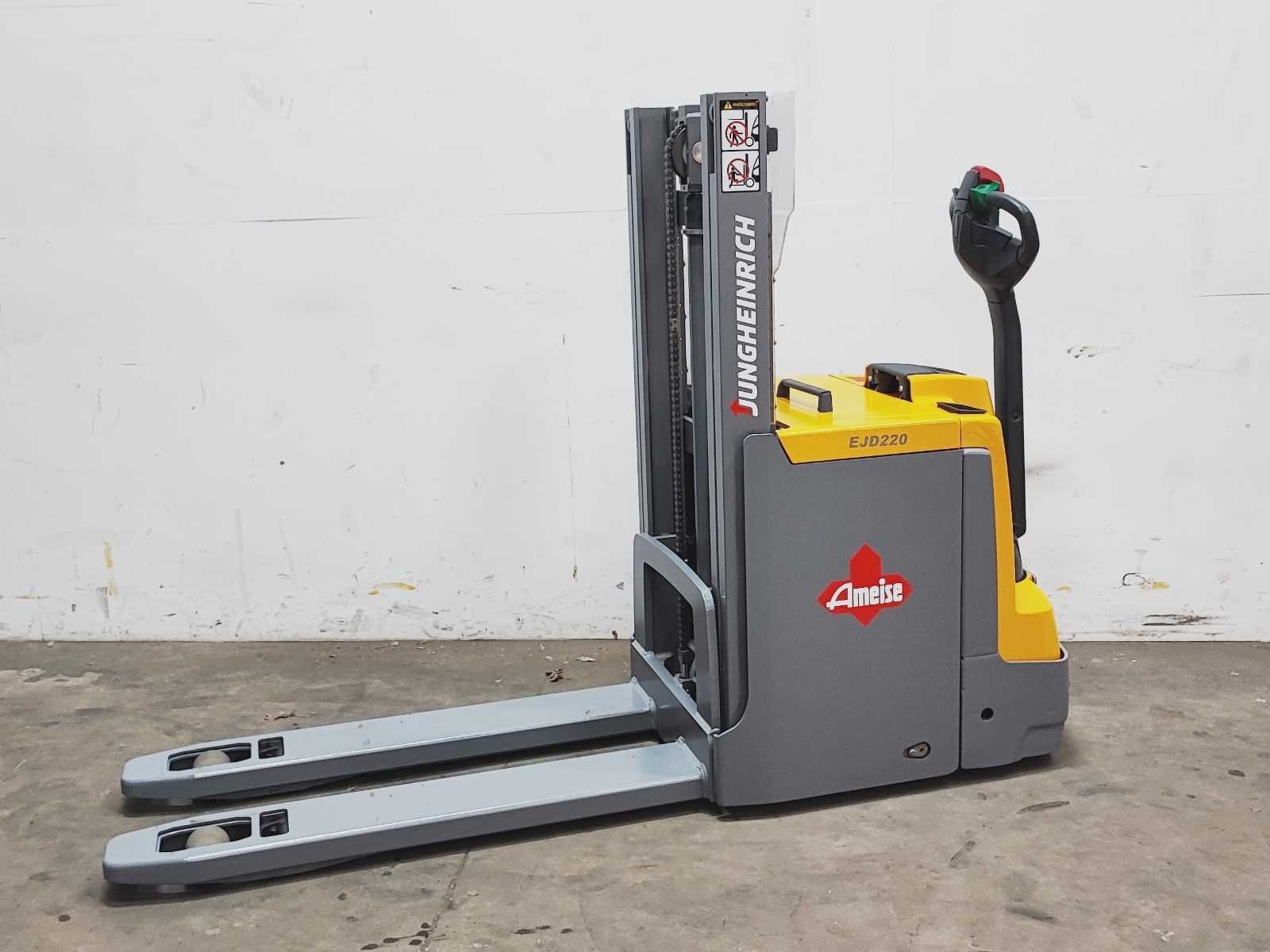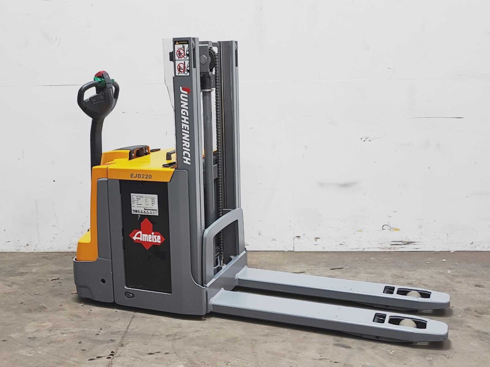 Jungheinrich EJD 220 elektro dubbelstock stapelaar v.v. duplo mast met dubbelstockfunctie, hefvermogen 2000 / 1000 kg, hefhoogte 210 / 2010 mm Merk: Jungheinrich Type: EJD 220 Bouwjaar: 2016 Serienummer: 90501837 Hefvermogen: 2000kg Hefhoogte: 2010mm Lepellengte: 1180mm Afgelezen urenstand: 4915 Eigen gewicht: 1050kg Minimale doorrijhoogte: 1480mm Totale afmeting L: 2200mm Totale afmeting Breedte: 750mm Totale afmeting Hoogte: 1480mm Accu lader: true
