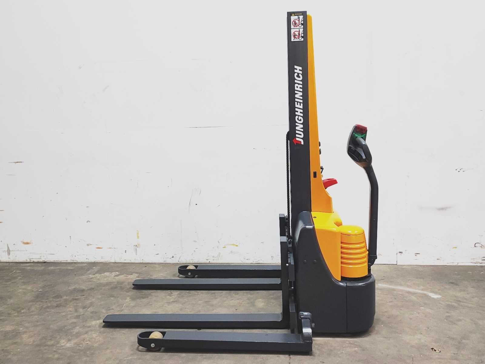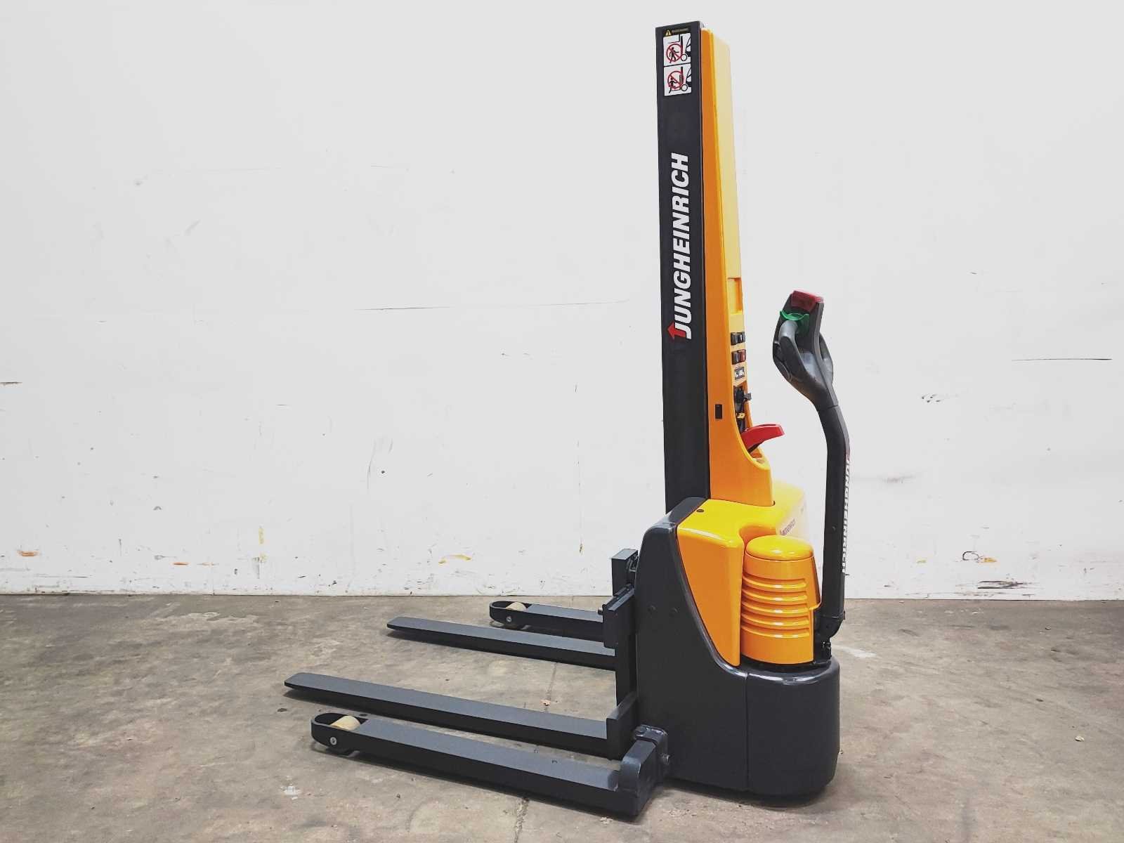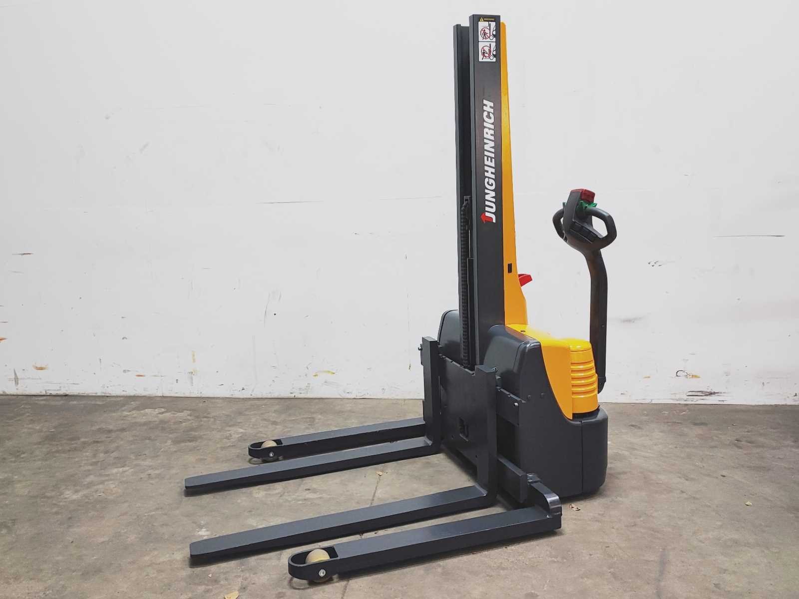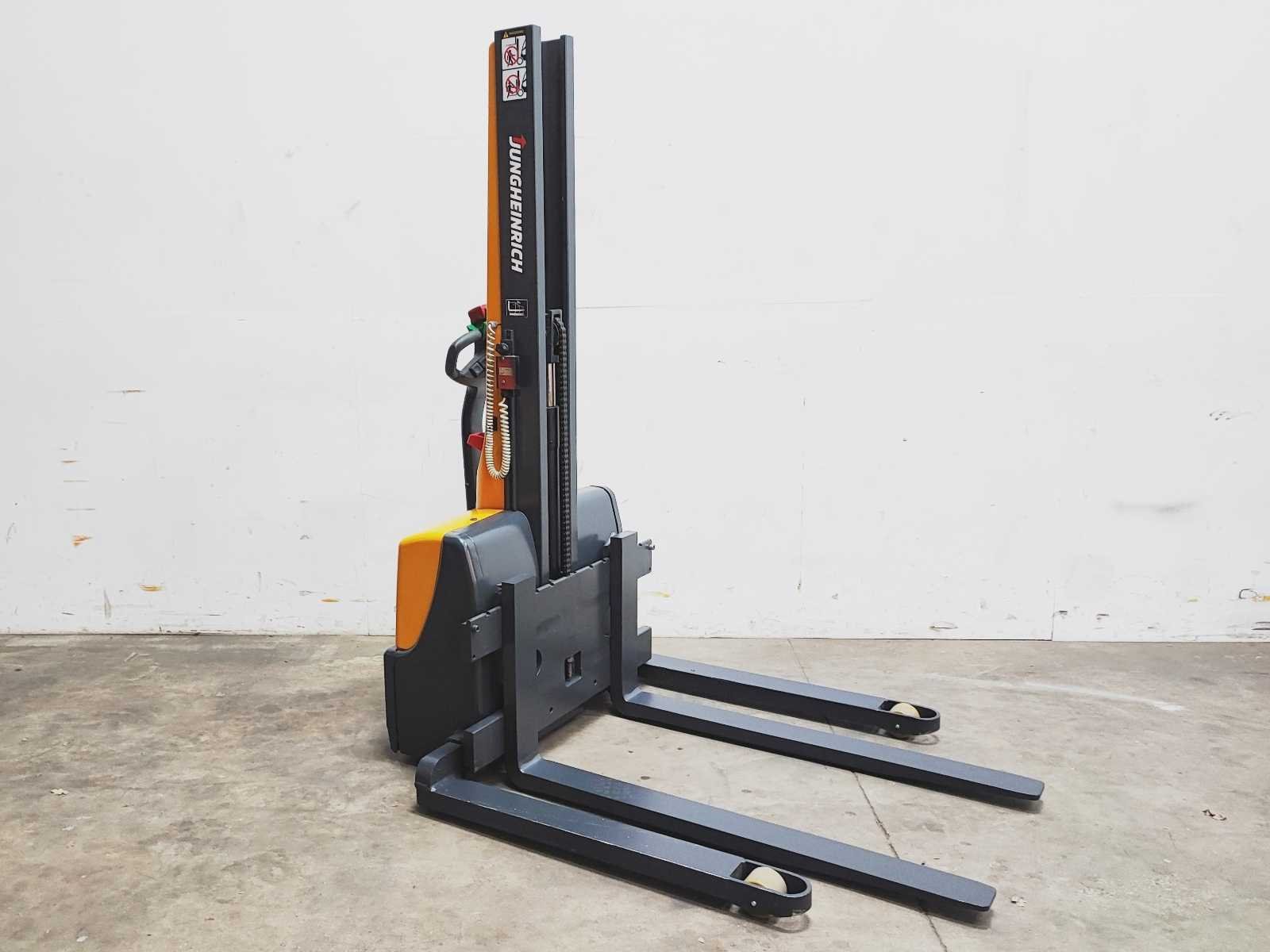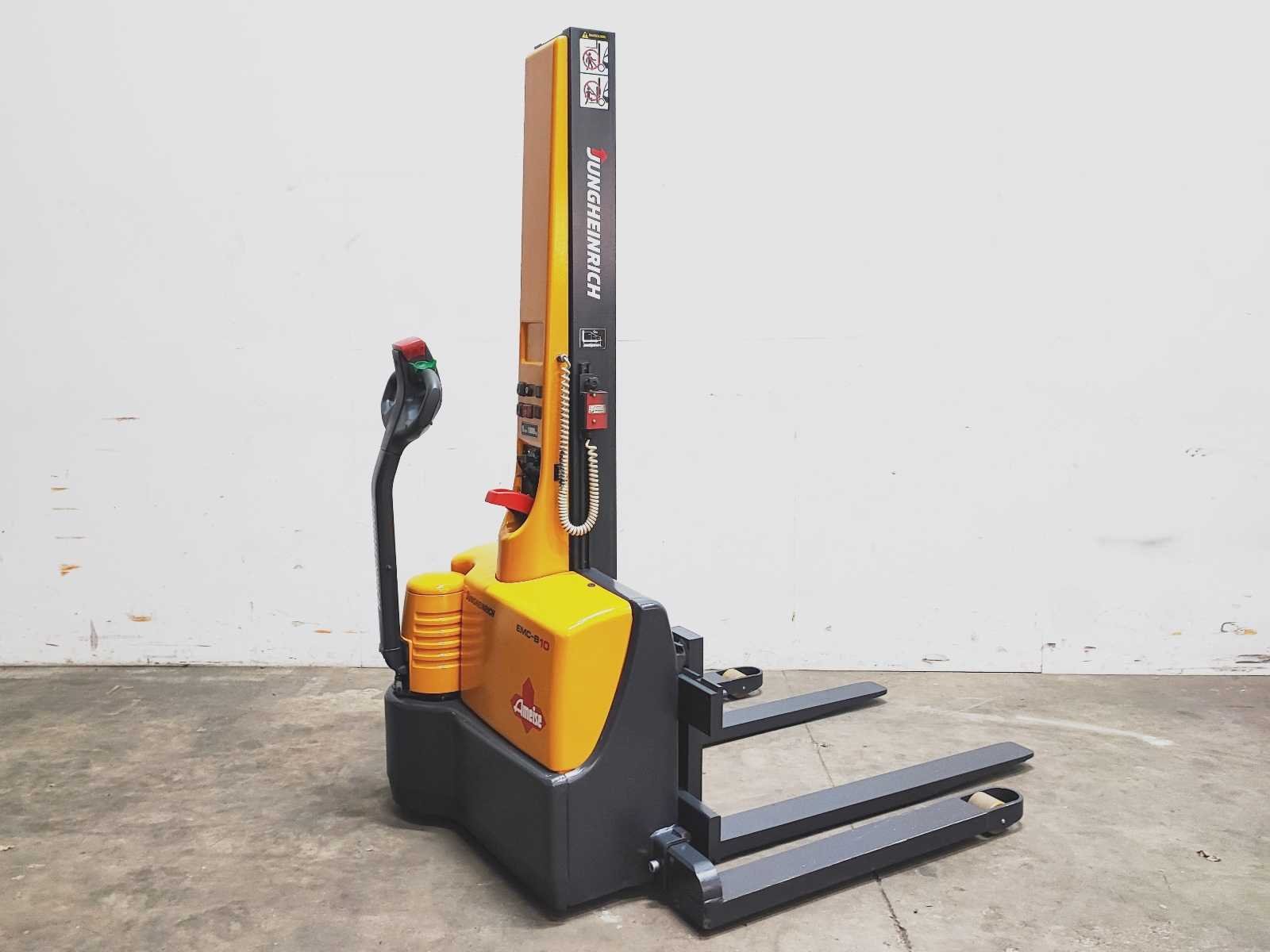 Jungheinrich EMC B10 elektro breedspoor stapelaar v.v. mono mast, breedte tussen de dragers is 970 mm Merk: Jungheinrich Type: EMC B10 Bouwjaar: 2008 Serienummer: 90301680 Hefvermogen: 1000kg Hefhoogte: 1570mm Lepellengte: 1150mm Eigen gewicht: 510kg Minimale doorrijhoogte: 1970mm Totale afmeting L: 1800mm Totale afmeting Breedte: 1180mm Totale afmeting Hoogte: 1970mm Accu lader: true