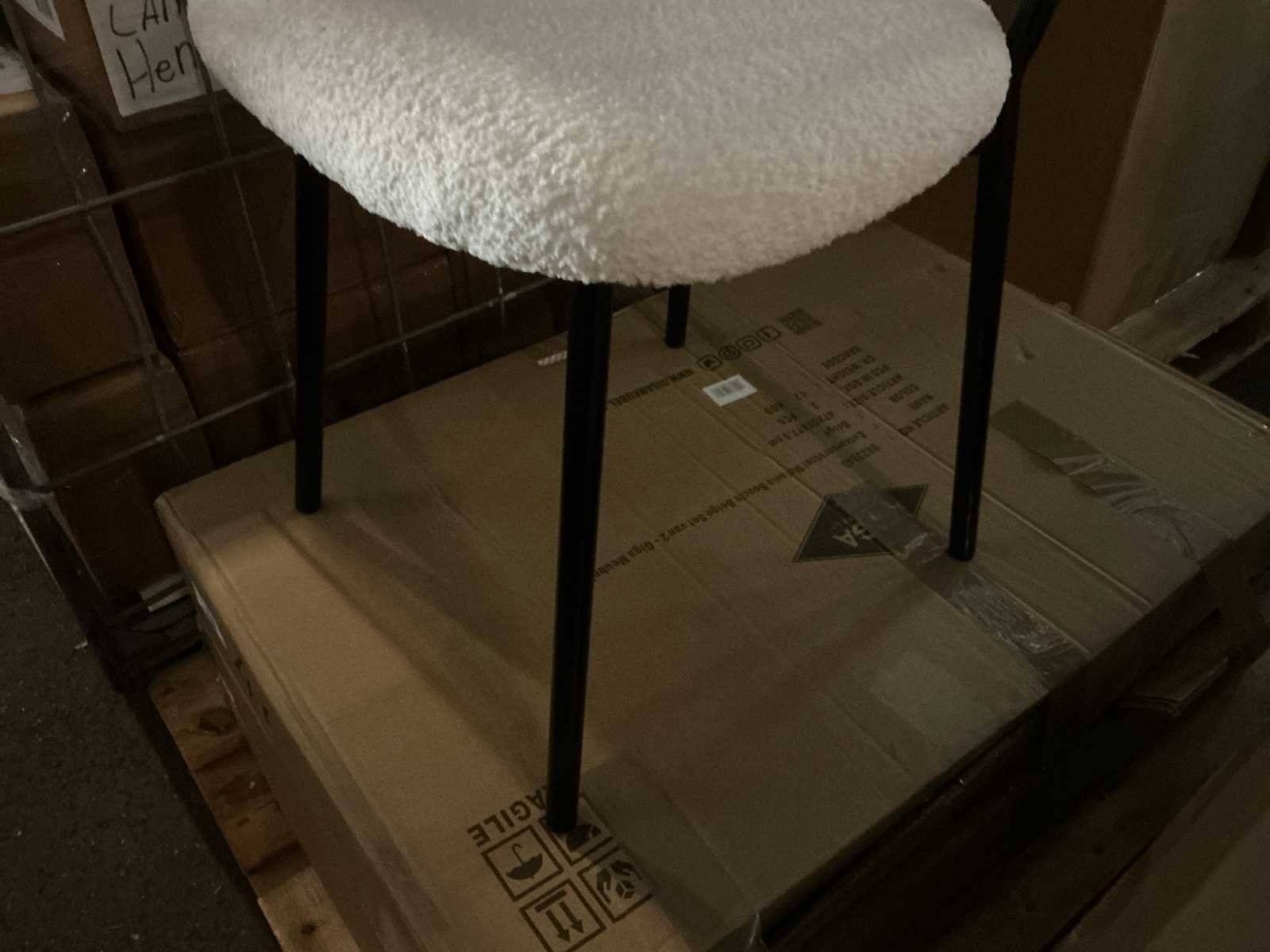 Merk: Gigameubel Model: Melanie boucle beige 8823843 Kleur: Beige Lengte: 47cm Breedte: 50cm Hoogte: 77cm Materiaal: Stoffen bekleding op metalen poot