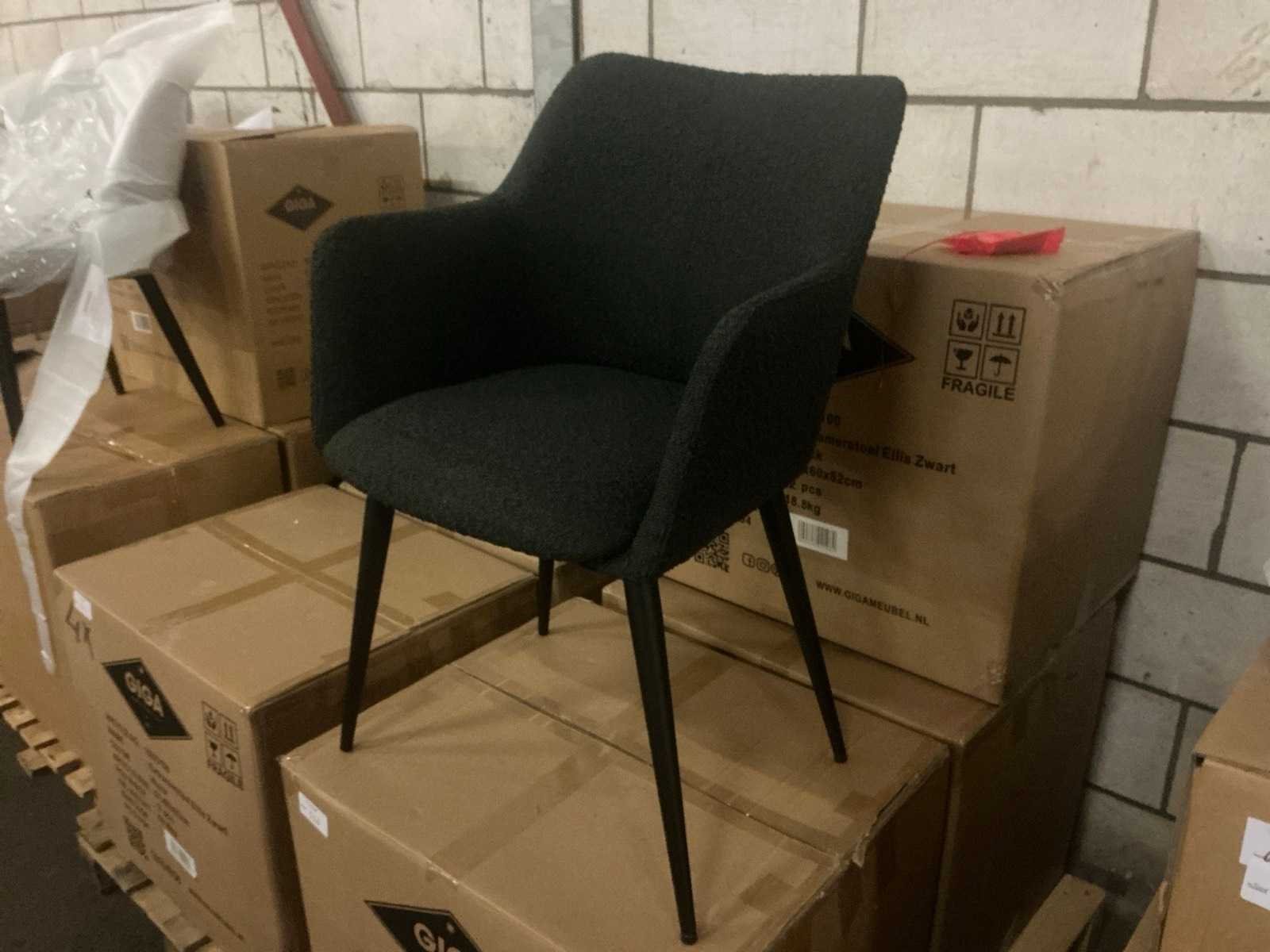 Merk: Gigameubel Model: Ellis Product type: 8823100 Kleur: Velvet zwart Lengte: 60cm Breedte: 57cm Hoogte: 82cm Materiaal: Velvet stoffen bekleding op zwartkleur frame