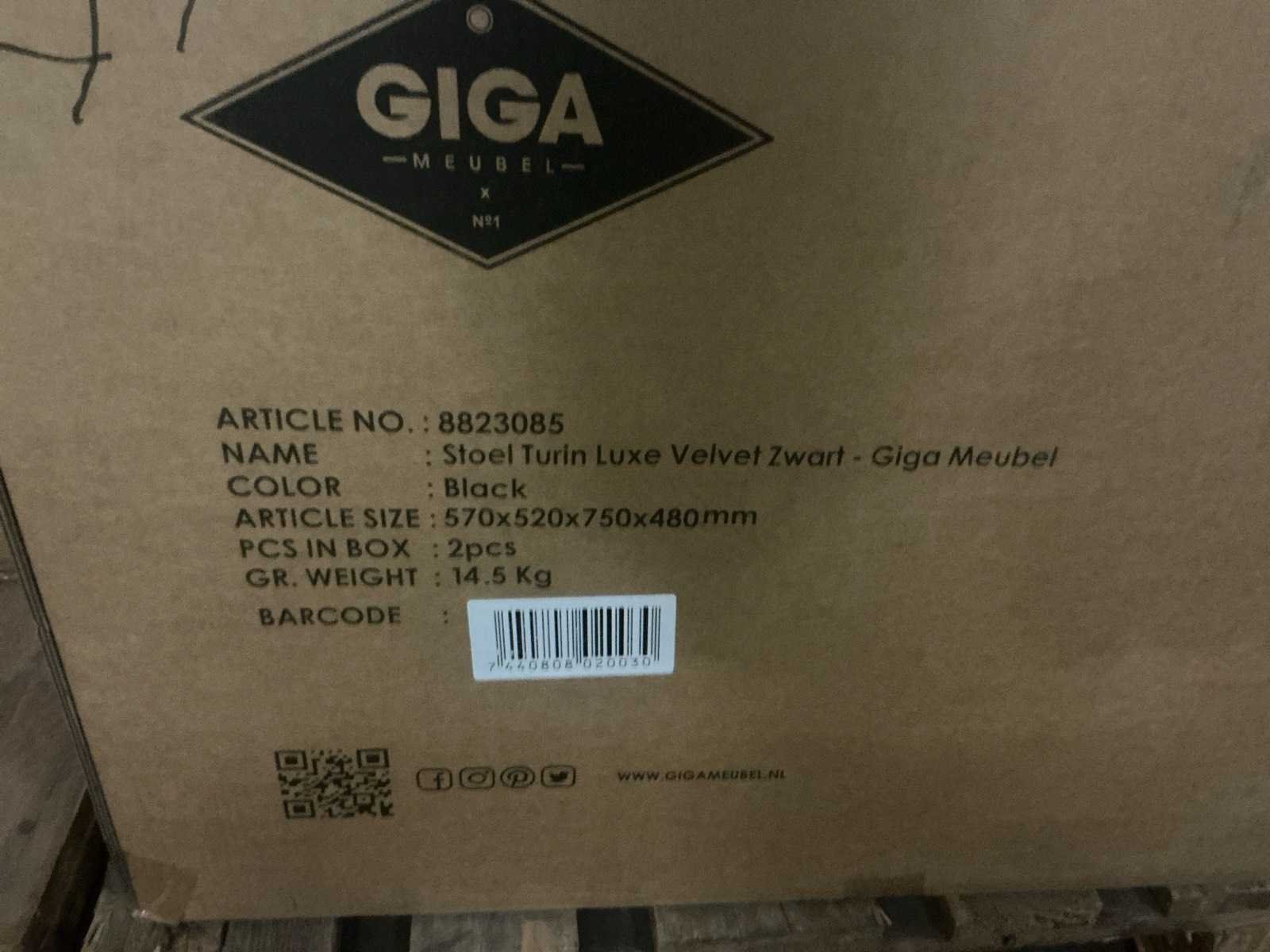 Merk: Gigameubel Model: Turin Luxe Product type: 8823085 Kleur: Velvet zwart Lengte: 48cm Breedte: 57cm Hoogte: 75cm Materiaal: Velvet stoffen bekleding op zwartkleur frame