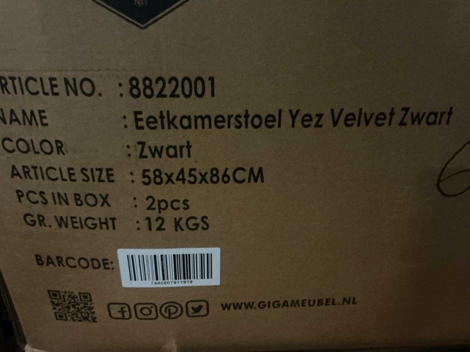 Gigameubel yez velvet zwart eetkamerstoel (6x)