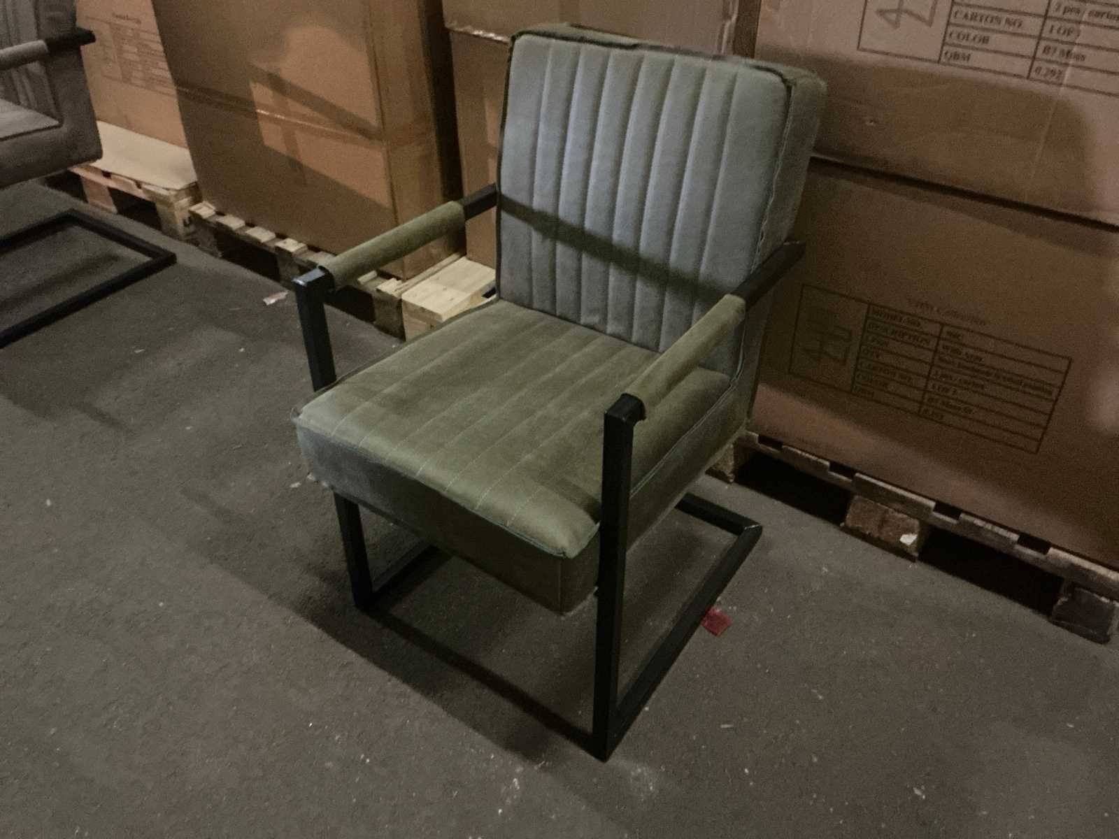 Merk: Passion for Life Model: Nic Kleur: B7 Moss Lengte: 49cm Breedte: 61cm Hoogte: 82cm Materiaal: Stoffen bekleding op metalen poot