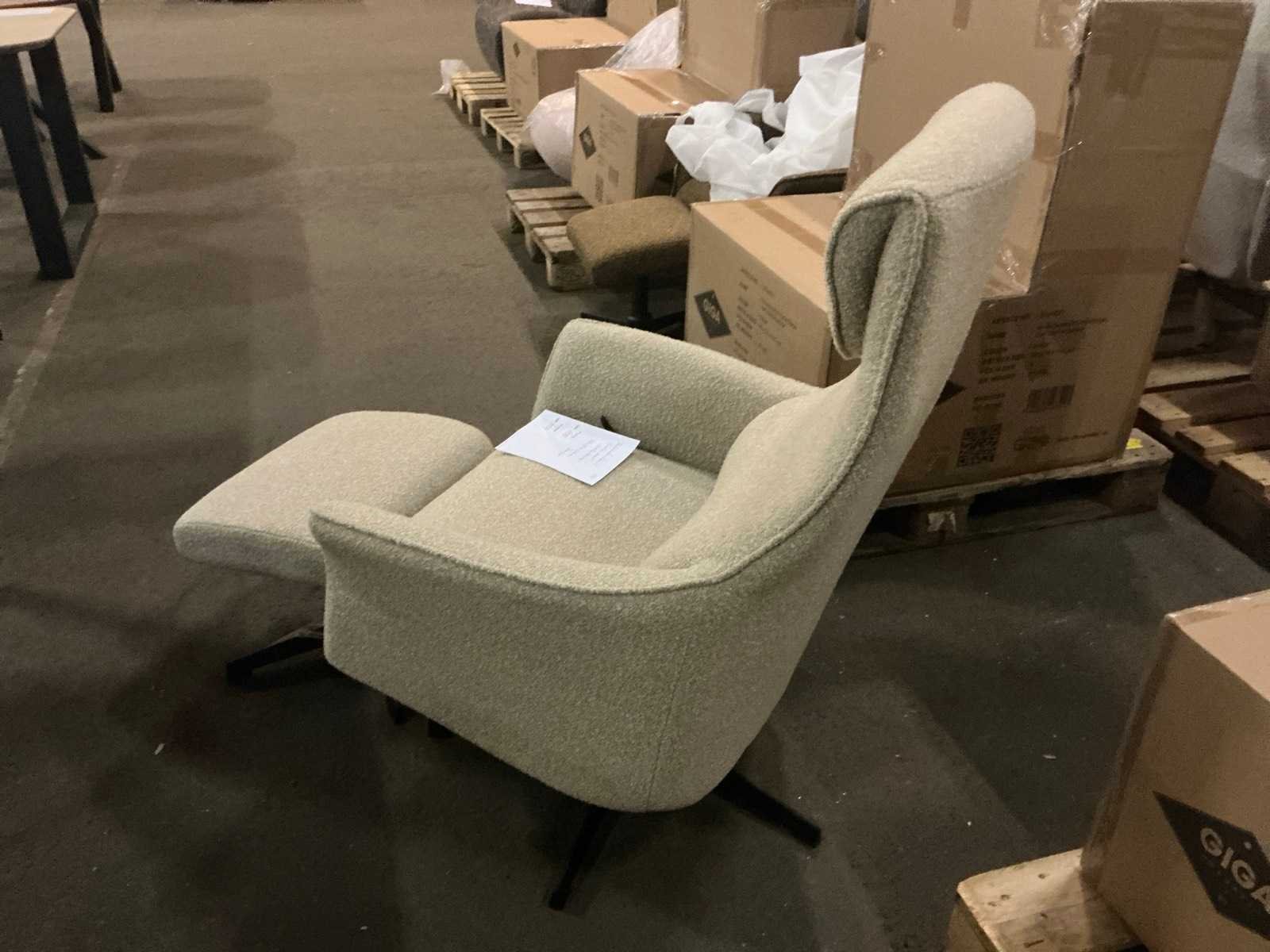 Met voetenbankje Merk: Gigameubel Model: Katie Kleur: Beige Lengte: 86cm Breedte: 78cm Hoogte: 110cm