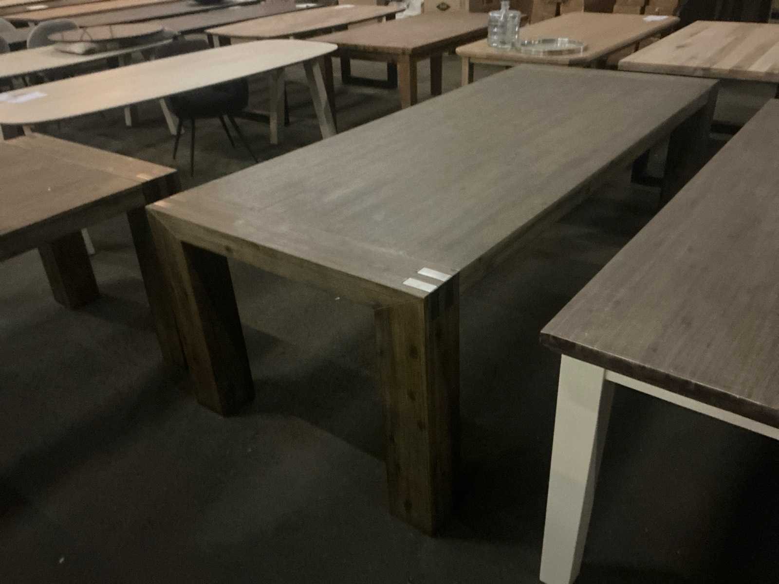 Merk: Pronto Model: Bassano Vorm: Recht Zitplaatsen: 8 Kleur: Rough grey warm Lengte: 250cm Breedte: 105cm Hoogte: 78cm Materiaal: Acacia hout