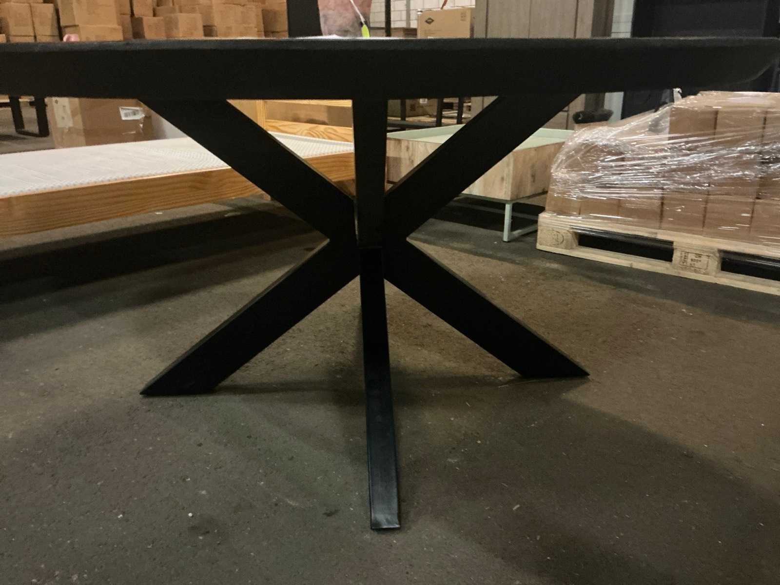 Model: Booming Kleur: Zwart Breedte: 150cm Hoogte: 75cm Materiaal: Houten blad, stalen kruispoot
