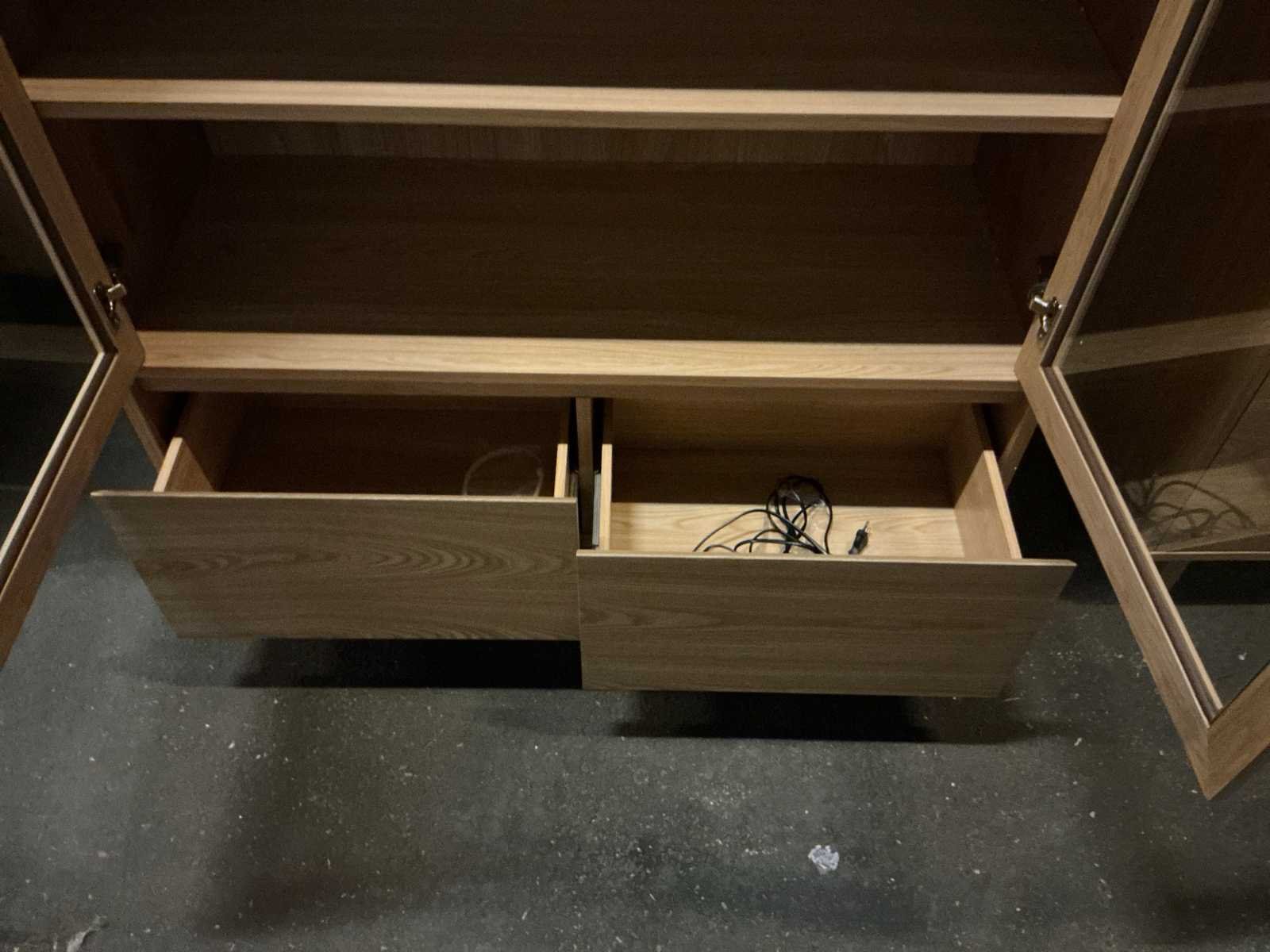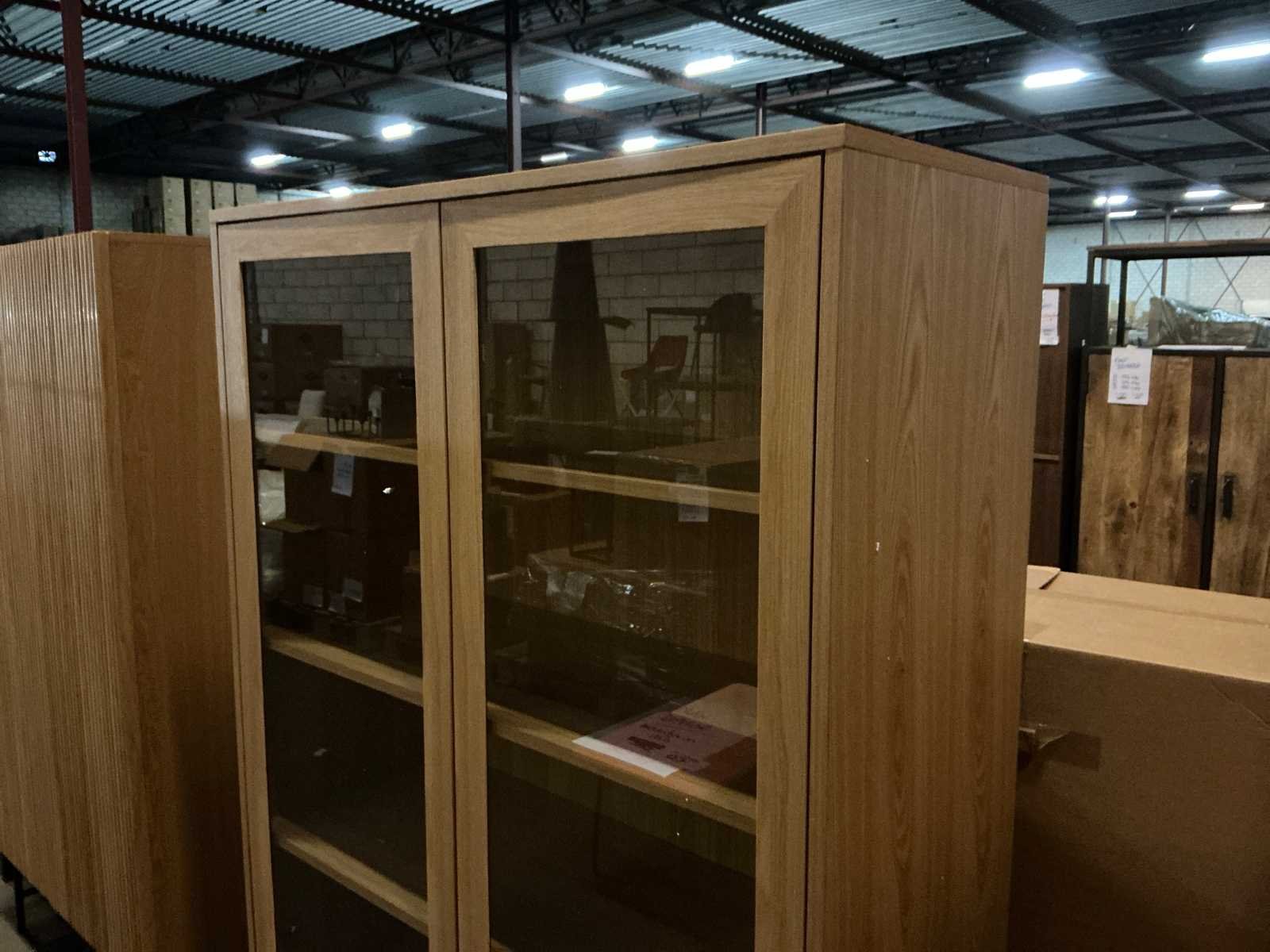 2 deuren, 2 lades. Model: Nubi Kleur: Mountain ash Lengte: 110cm Breedte: 45cm Hoogte: 181cm Materiaal: Hout/glas