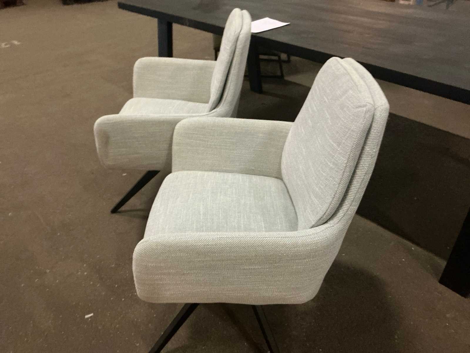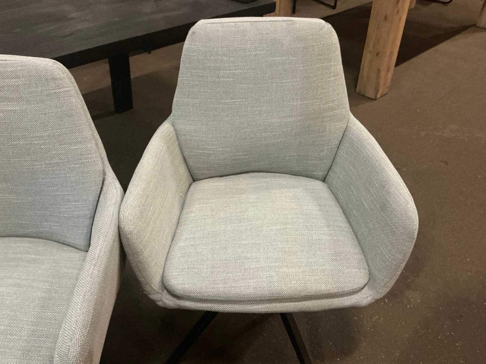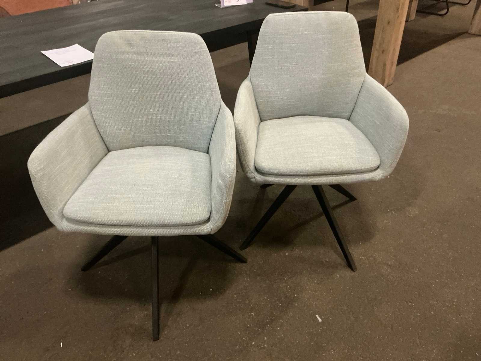 Draaistoel met armleuning Kleur: Groen Breedte: 62cm Hoogte: 88cm Zithoogte: 47cm Materiaal: Gestoffeerd Diepte: 45cm