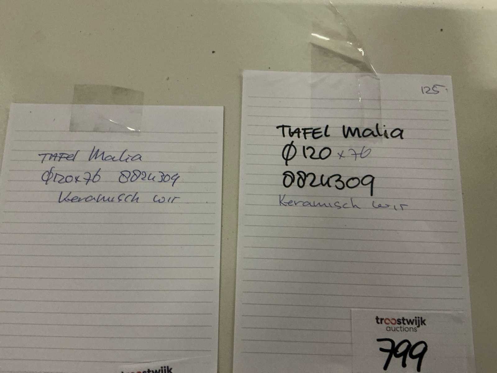 Merk: Gigameubel Model: Malia (8824309) Vorm: Rond Kleur: Wit Lengte: 120cm Breedte: 120cm Hoogte: 76cm Materiaal: Keramiek