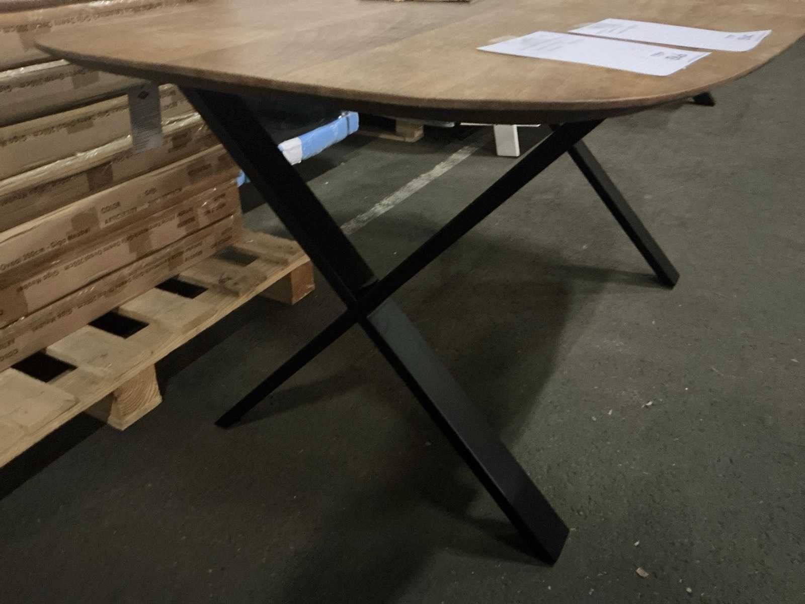 Model: Gordon Vorm: Deens ovaal Zitplaatsen: 4 Kleur: Bruin Lengte: 160cm Breedte: 100cm Hoogte: 77cm Materiaal: Hout en metaal