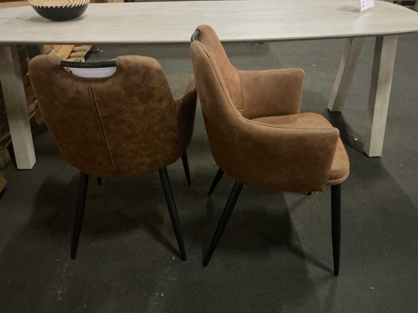 Model: Cognac Kleur: Cognac Breedte: 58cm Hoogte: 86cm Zithoogte: 48cm Materiaal: Staal met kunstleder kuip zitting Diepte: 45cm
