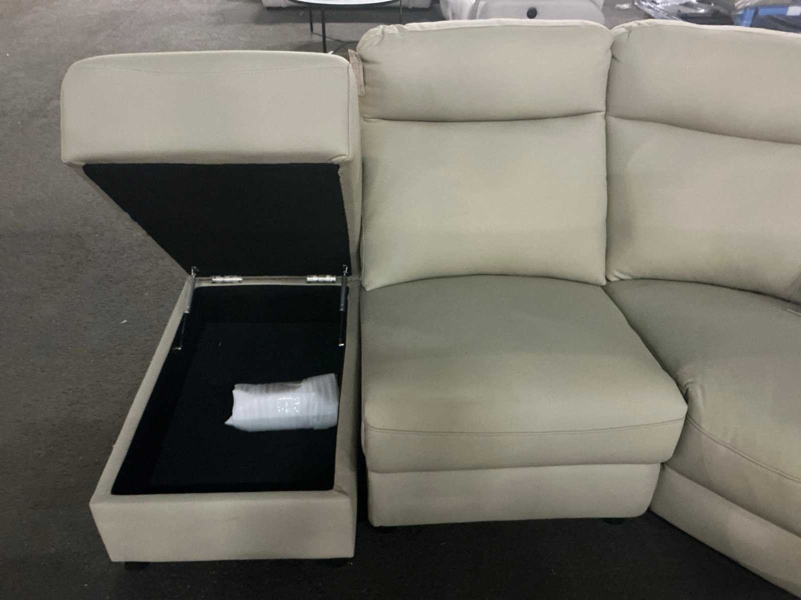 Royale hoekbank, met relax functie en opberg ruimte Model: Luigi K8 Zitplaatsen: 4 Kleur: Beige Lengte: 260cm Breedte: 220cm Hoogte: 105cm Zithoogte: 45cm Diepte: 54cm Materiaal: Kunstleder