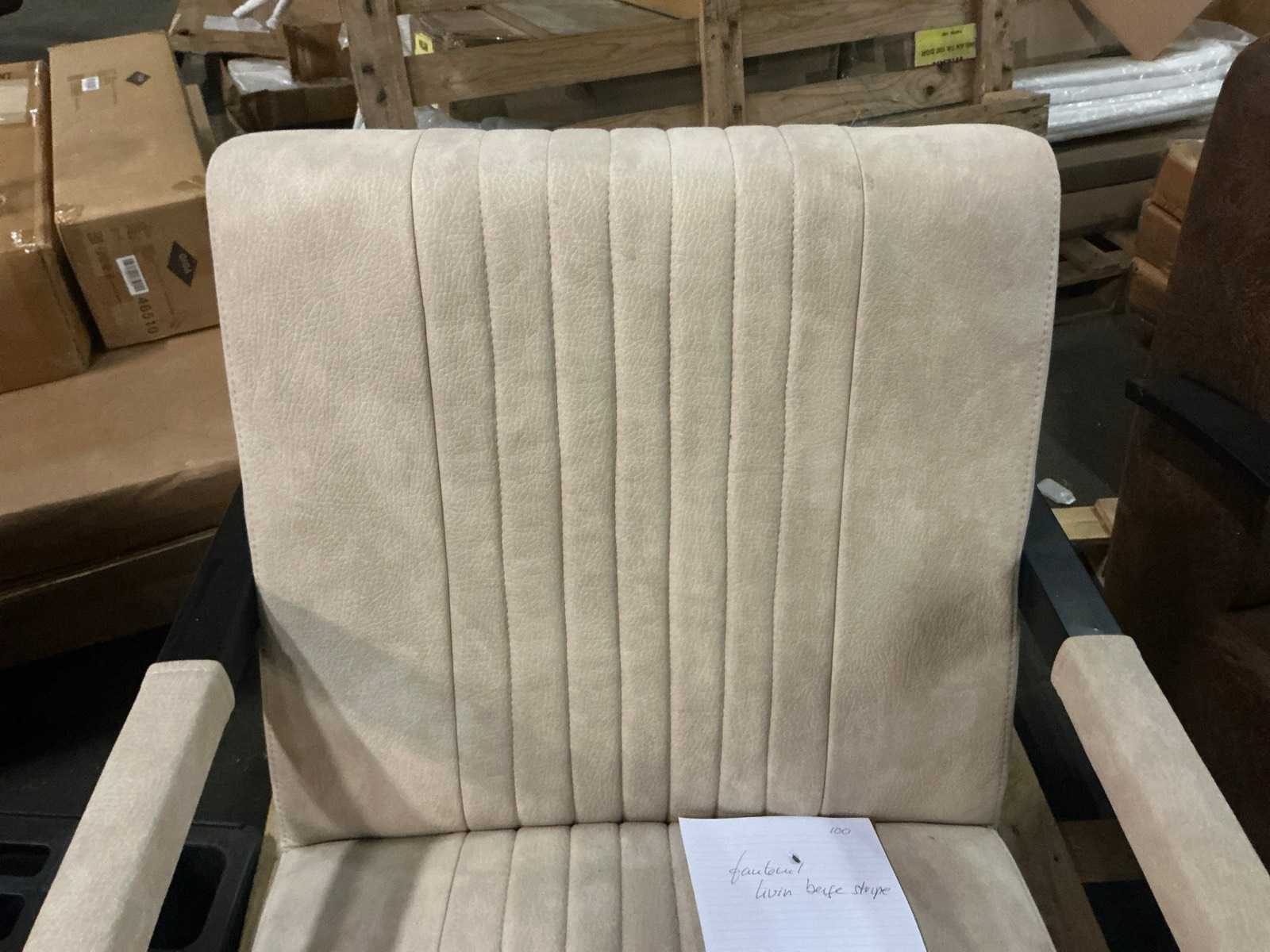 Merk: Livia Model: Beige Stripe Kleur: Bruin Breedte: 67cm Hoogte: 84cm Zithoogte: 44cm Materiaal: Staal met kunstleder zitting