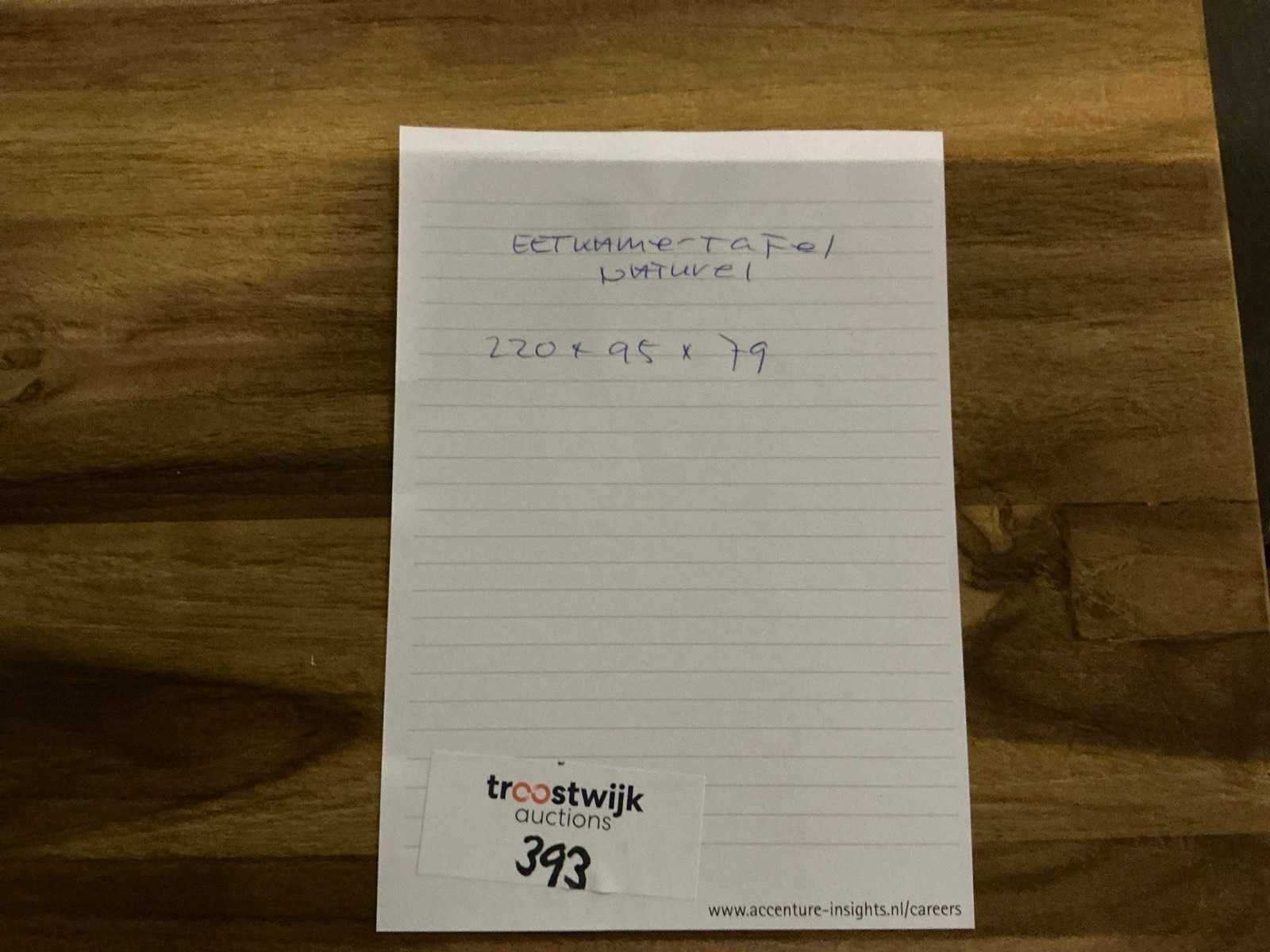 Vorm: Recht Zitplaatsen: 6 Kleur: Naturel Lengte: 220cm Breedte: 95cm Hoogte: 79cm Materiaal: Hout blad op metalen poot