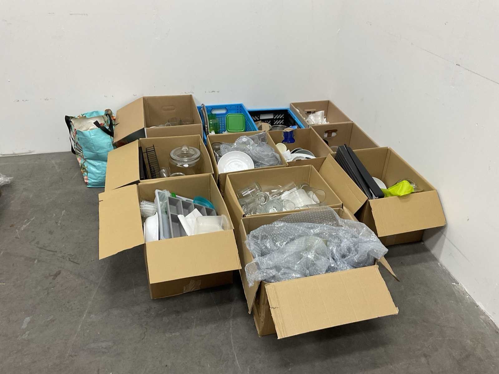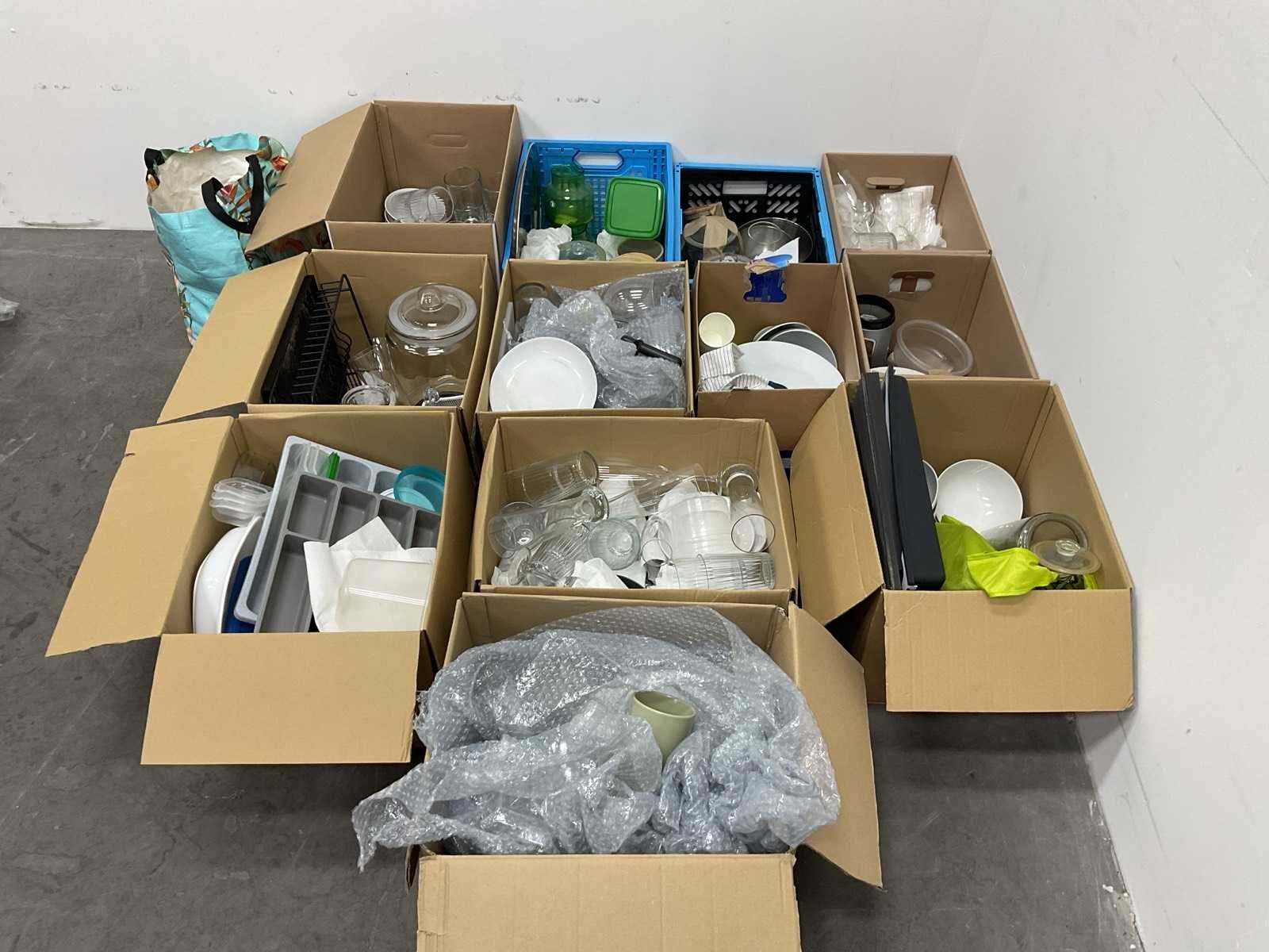 Diverse dozen met servies en aanverwante artikelen