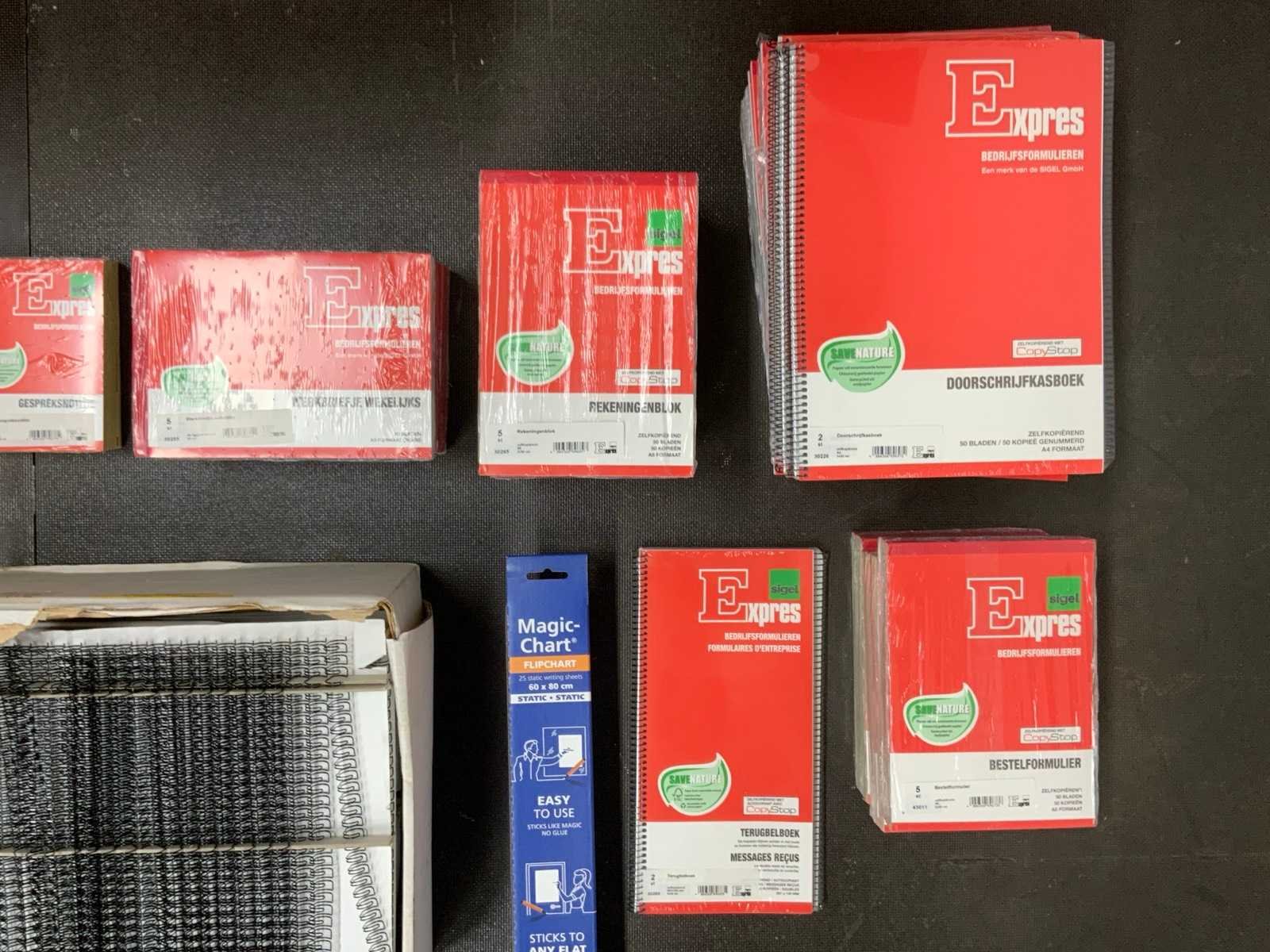 1e: Schriften 2e: Flipcharts 3e: Stempels 4e: Labels 5e: Printpapier 6e: Nietmachines 7e: Etc.