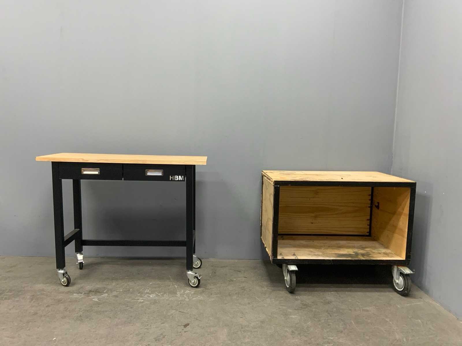 Hbm werktafel (2x) 122x51x98 cm en 105x71x86 cm