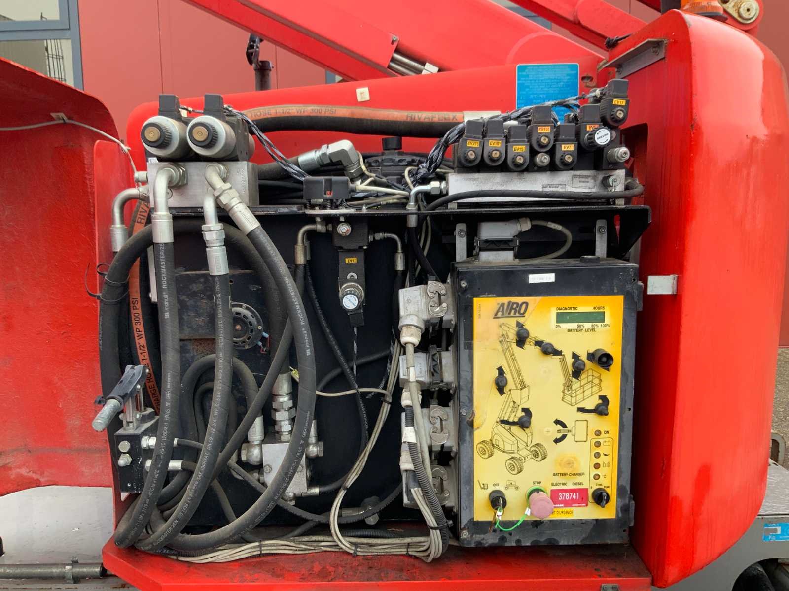 Made in Italië, met EC conformiteitsdocument, stroom op platform, silent pack Hatz dieselmotor, nieuwe startaccu en gebruikershandleiding. Merk: Airo Type: A16JRTD Bouwjaar: 2019 Serienummer: SG22794 Diesel: true Motorvermogen (kW): 35kW Knikarm hoogwerker: true Werkhoogte: 16000mm Horizontale rijkwijdte: 8100mm Platform capaciteit: 230kg Afgelezen urenstand: 737 Eigen gewicht: 7160kg Totale afmeting L: 5500mm Totale afmeting Breedte: 2000mm Totale afmeting Hoogte: 2050mm