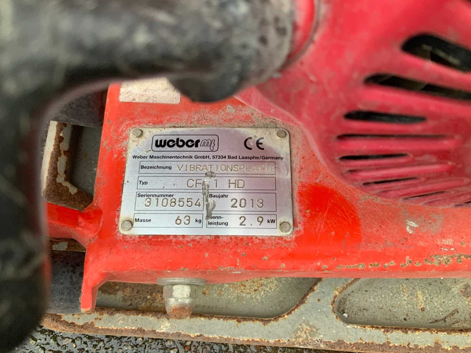 Merk: Weber Type: CF 1 HD Bouwjaar: 2013 Serienummer: 3108554 Bedrijfsgewicht: 63kg Grondplaat afm. l: 550mm Grondplaat afm. b: 380mm Merk motor: Honda Motorvermogen (kW): 2.9kW Eigen gewicht: 63kg