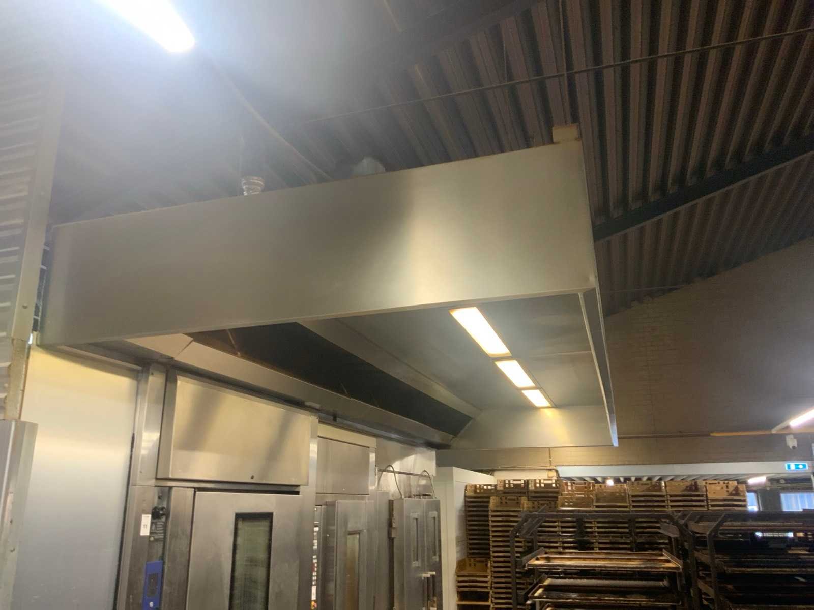 2-delig, voorzien van verlichting en vetfilters. afvoerpijp afkoppelen onder dak Lengte: 710cm Breedte: 250cm Hoogte: 60cm