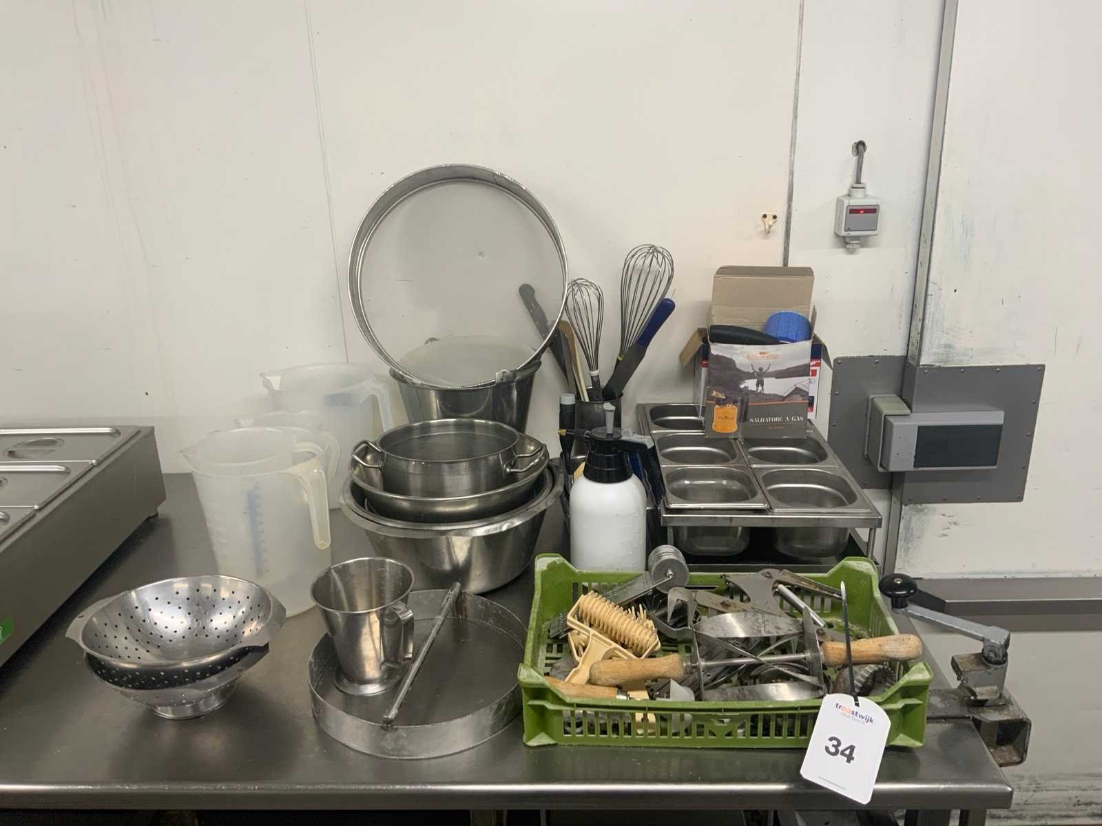 Waaronder: maatbekers, 1 zeefring, 2 lekbakken, jan hagelsnijders, croissantsnijder, korstprikkers, 1 Patentschaar, eslagkommen
