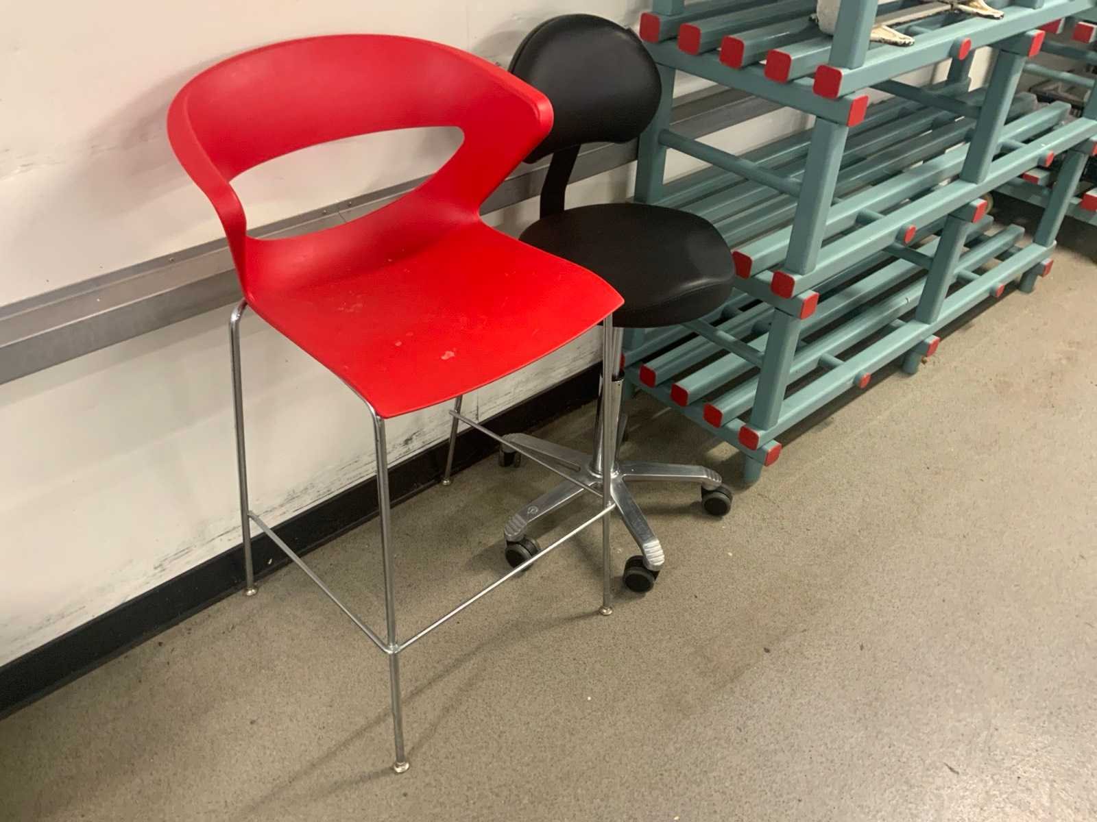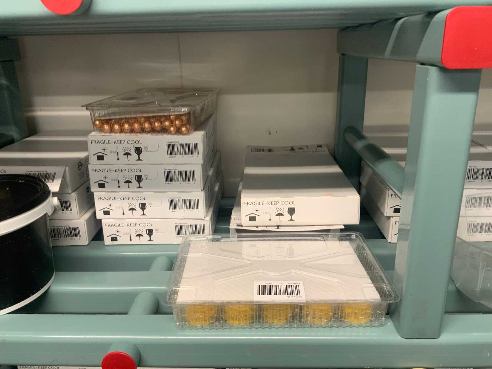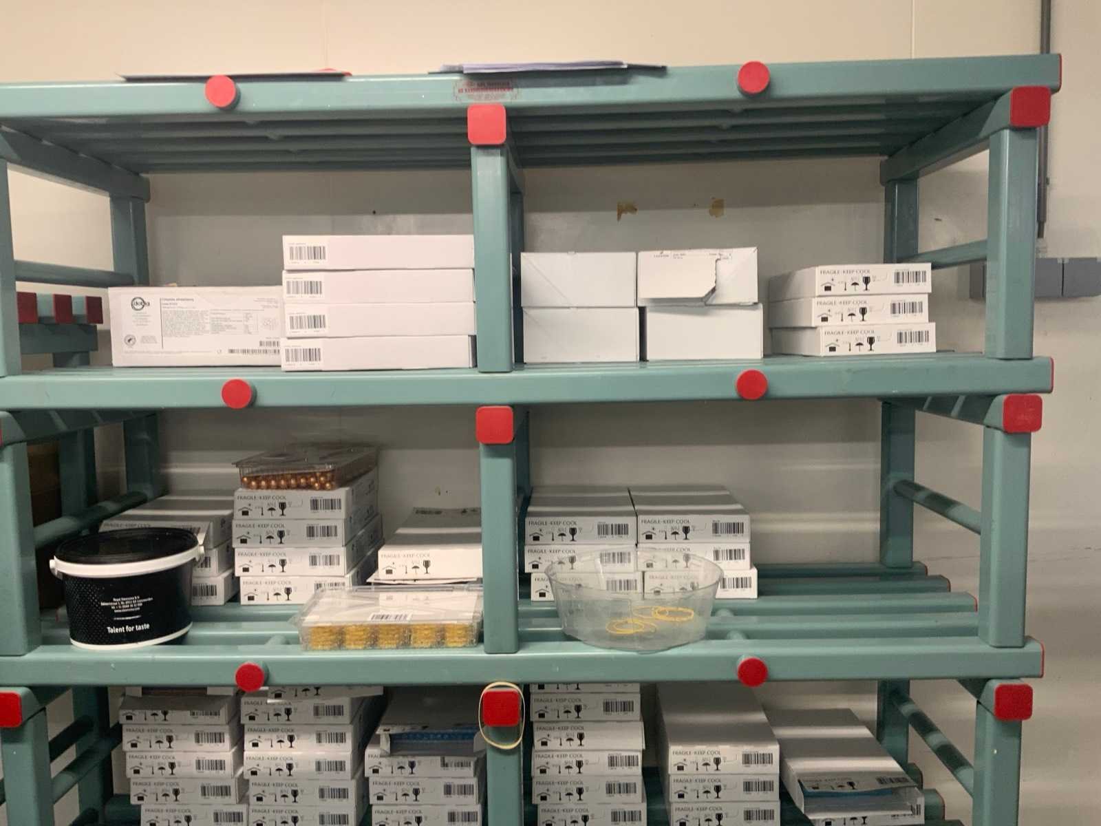Waaronder afmeting: 1x L400 x B610 x H1870 mm, 1x afmeting: B1500 x D505 x H2150 mm, gevuld met gebaksdecoratie, cups, rollen handdoek papier. inclusief 2 stoelen waaronder 1x score en toonbankpapierrolhouder