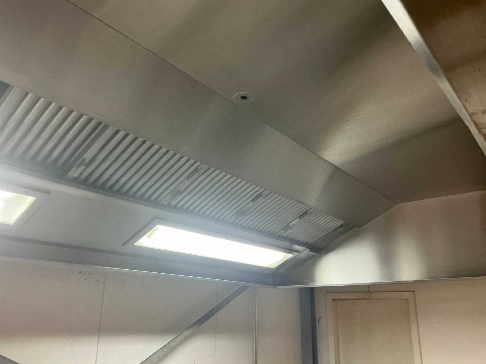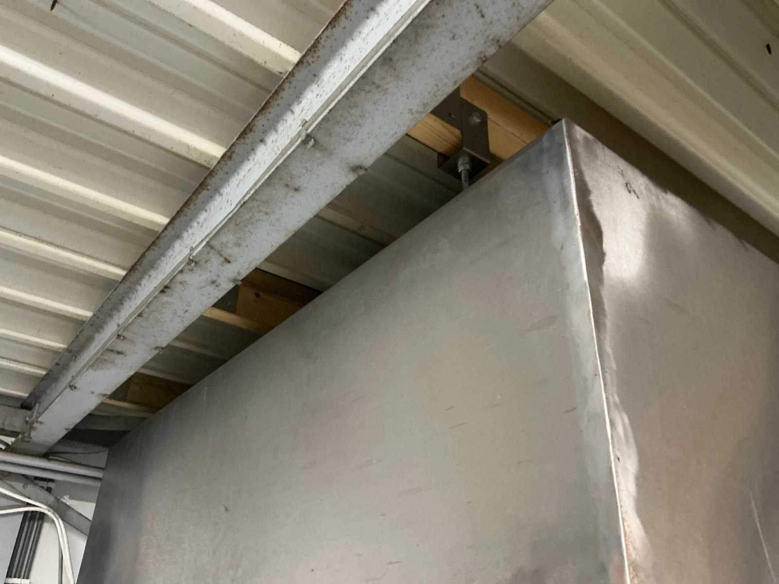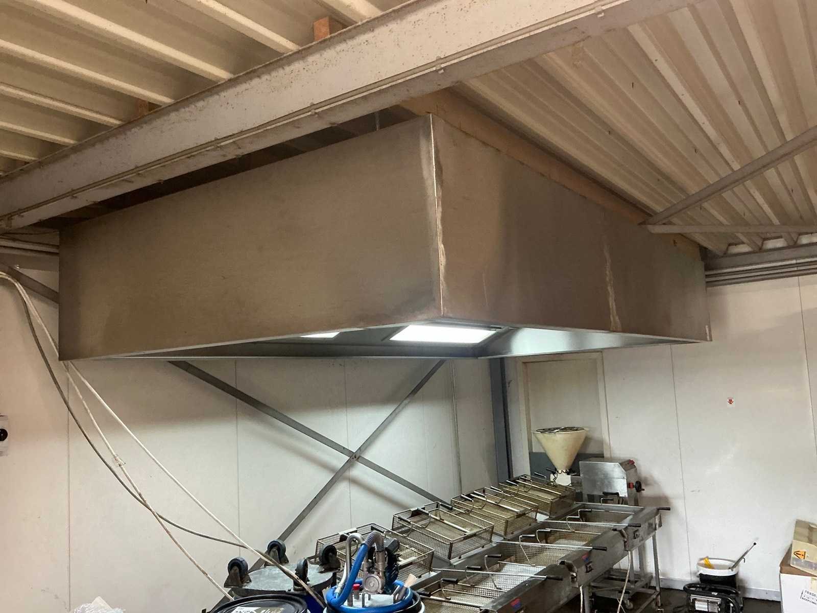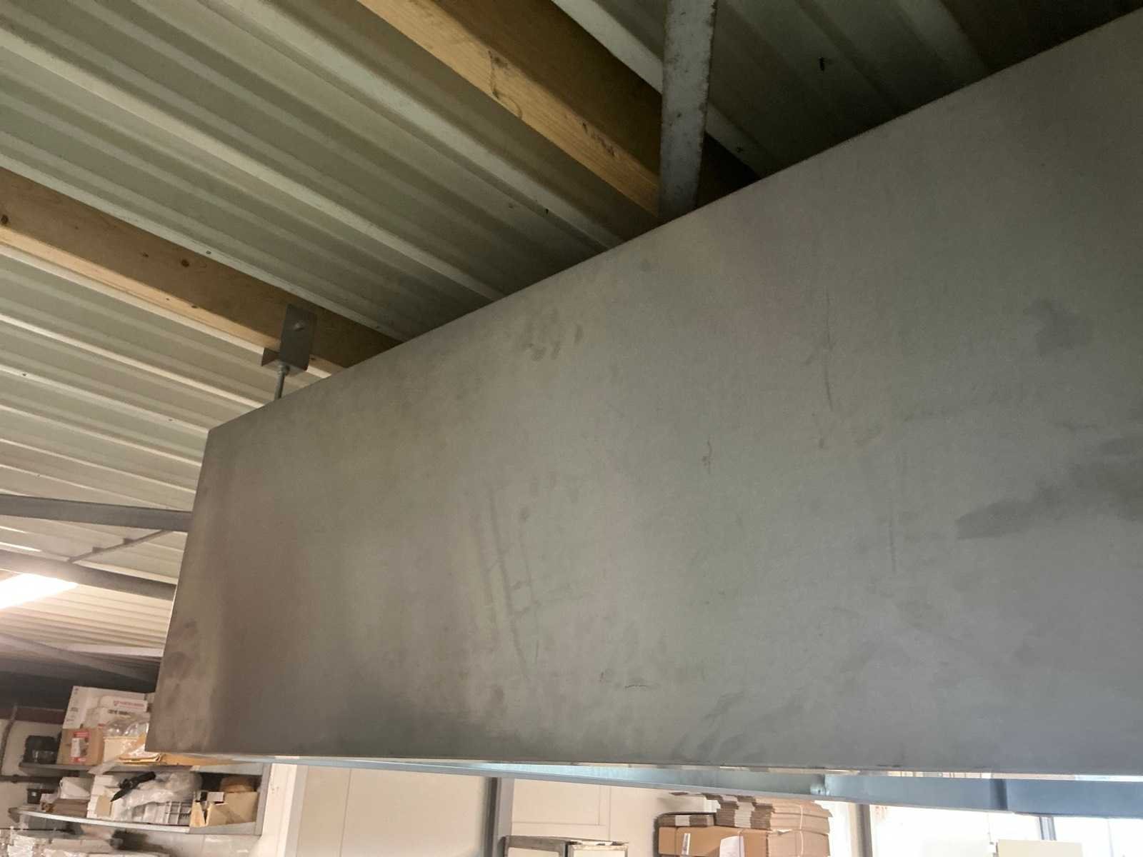 Voorzien van verlichting. Hangt op circa 3000mm hoogte. Materiaal: RVS Totale afmeting Breedte: 3850mm Totale afmeting L: 2000mm Totale afmeting Hoogte: 600mm