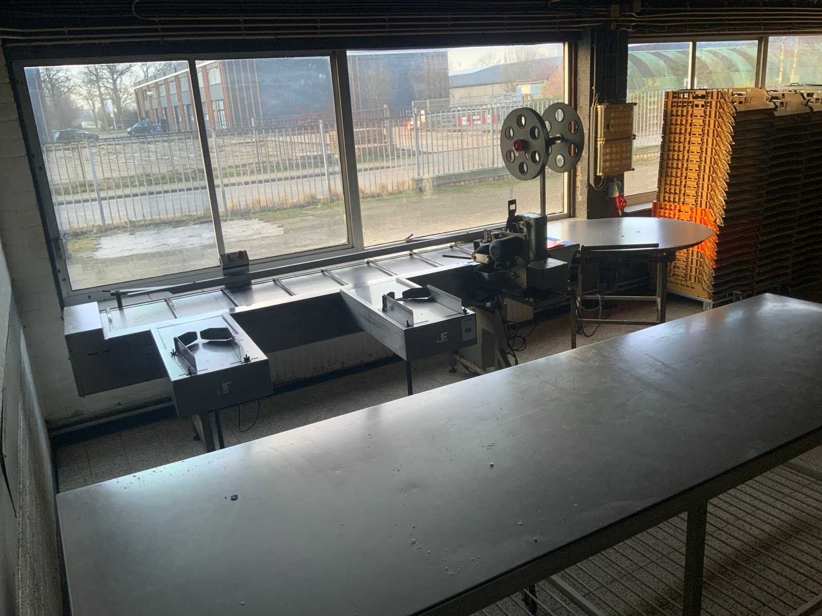 Voorzien van 2 zakkenblaasstations, opleg transportbaan v.v. meenemers, 1 Kwik Lok clip sluitapparaat (2009), type: 1082J8 MR en buffertafel, ø 1200mm. inclusief 1 rvs tafel, blad afmeting: L2950 x B900 mm. Merk: Jochems Type: engenering Aansluiting: 230V