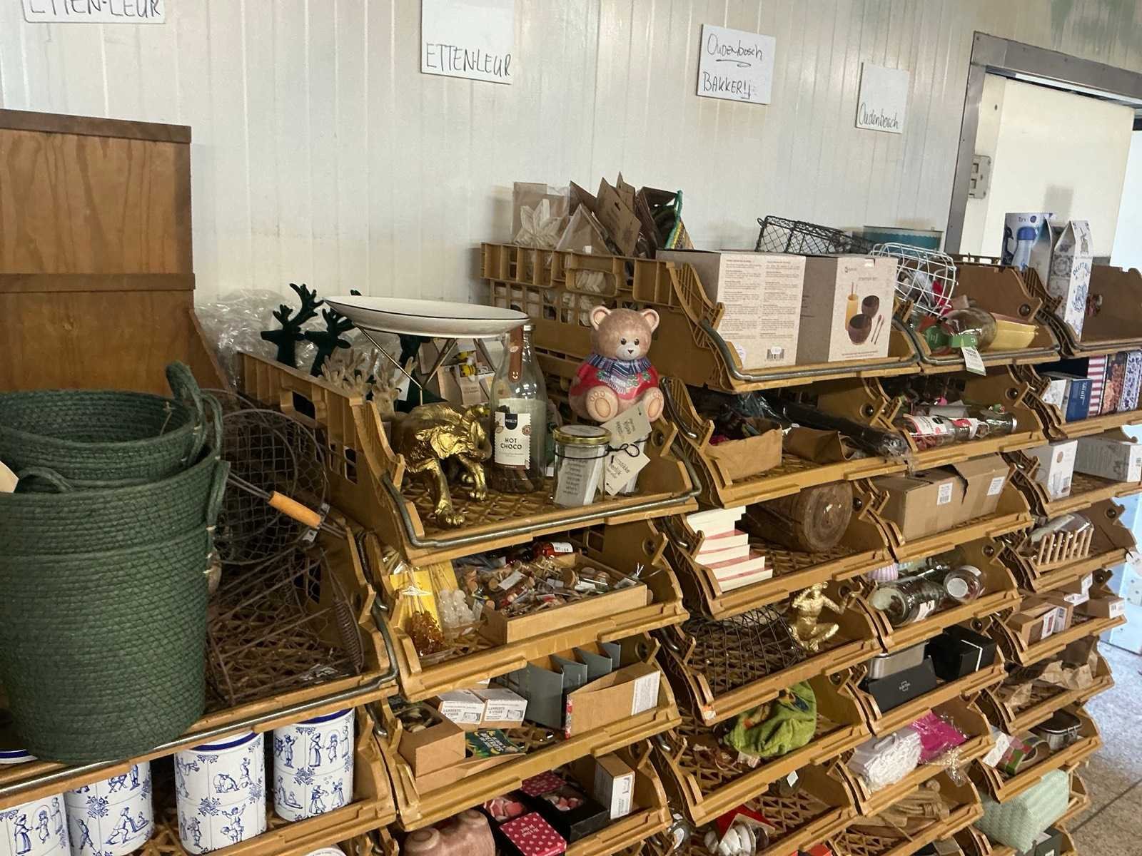 Inclusief 75 broodkratten en 8 dollies. Onder andere: trommels, snoepgoed, servies, kruiden, olie, keukengerei en diversen