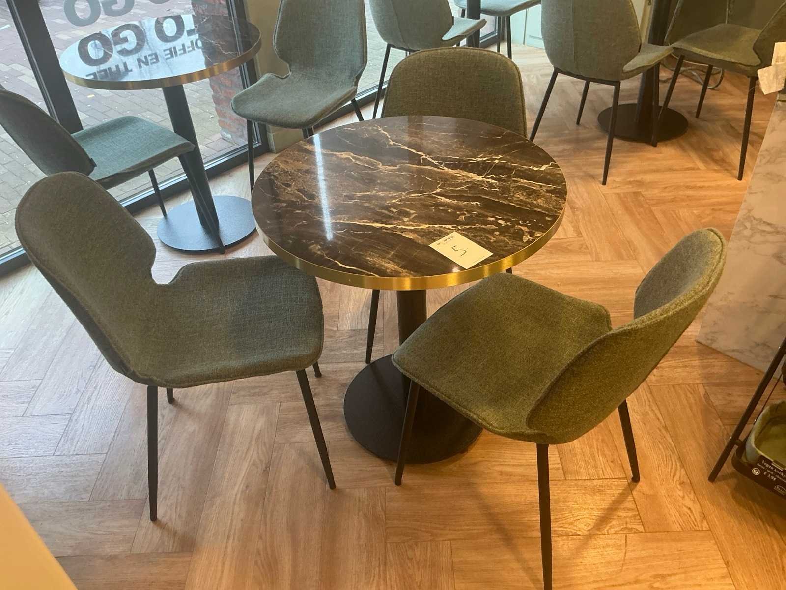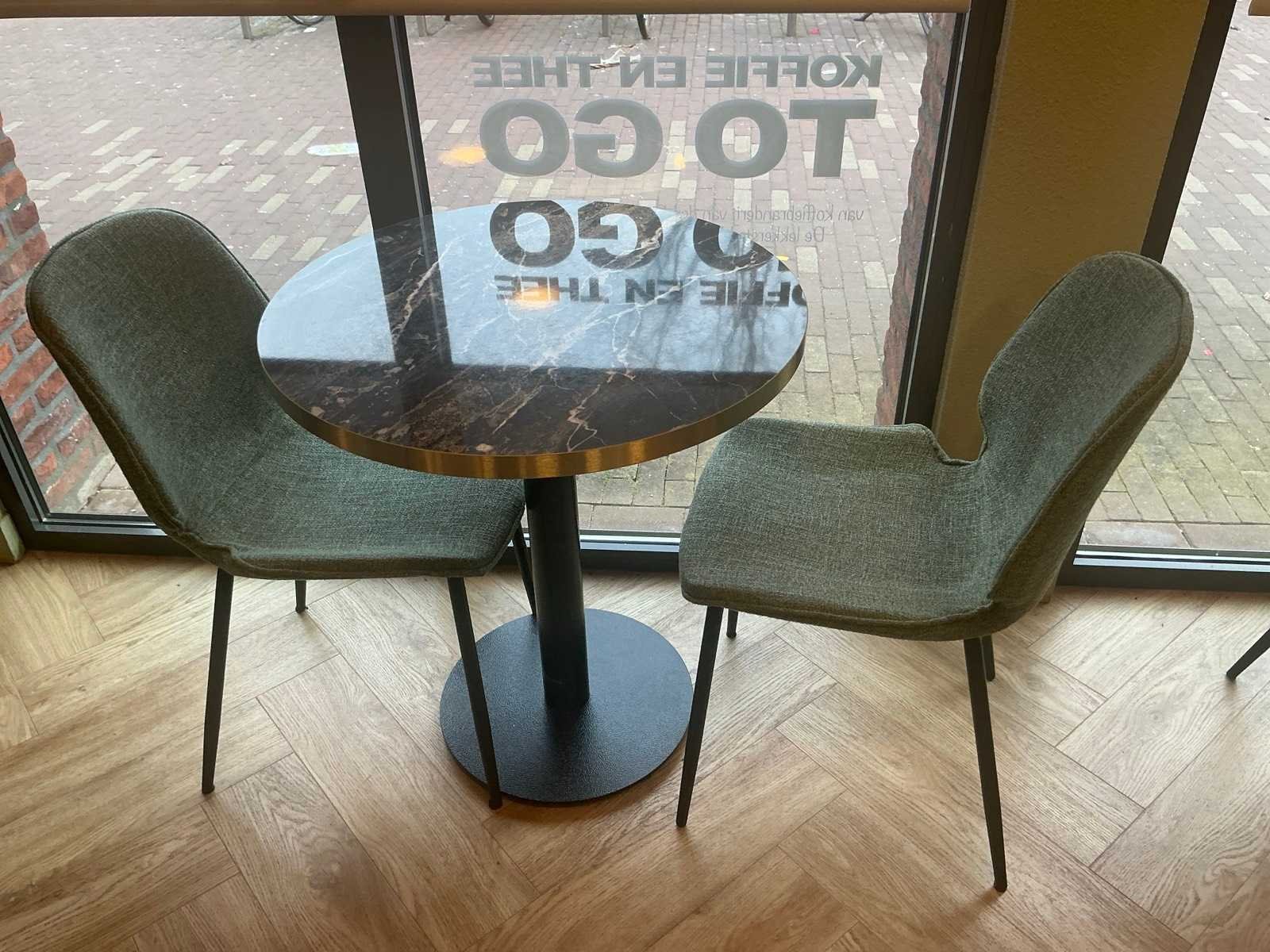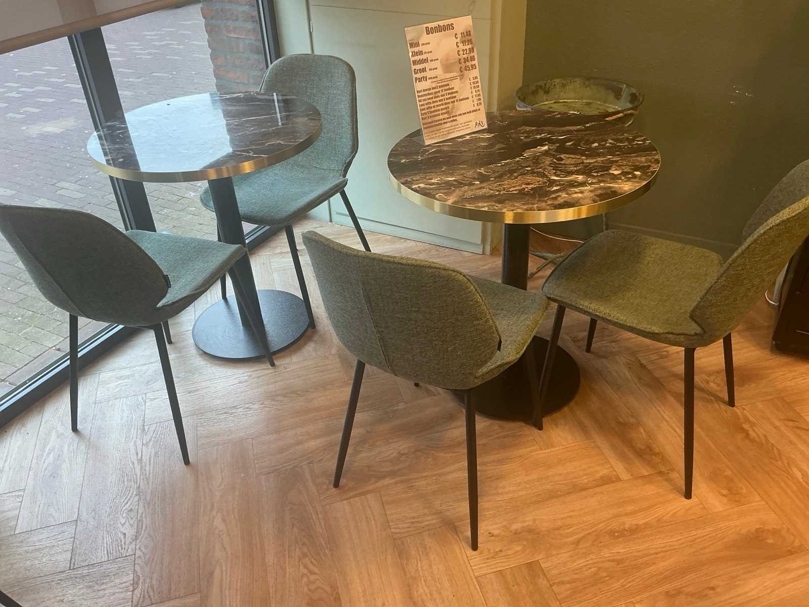 Waaronder 4x ronde tafels en 9x gestoffeerde stoelen Merk: De Arend