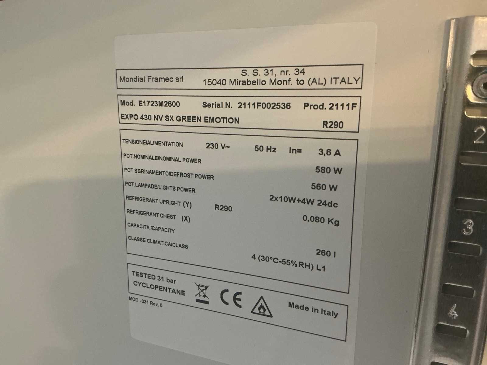 Type: Expo 430nv Mobiel: true Aansluiting: 230V Capaciteit.: 260l Totale afmeting L: 70cm Totale afmeting Breedte: 55cm Totale afmeting Hoogte: 200cm