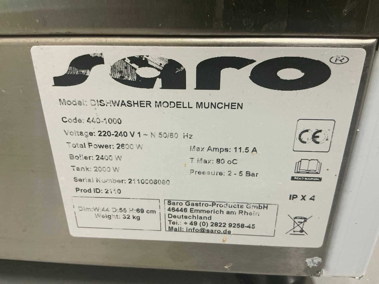 Merk: Saro Type: Dishwasher München Aansluiting: 230V Rvs: true Korf afmeting h: 100mm Korf afmeting b: 305mm Korf afmeting l: 305mm