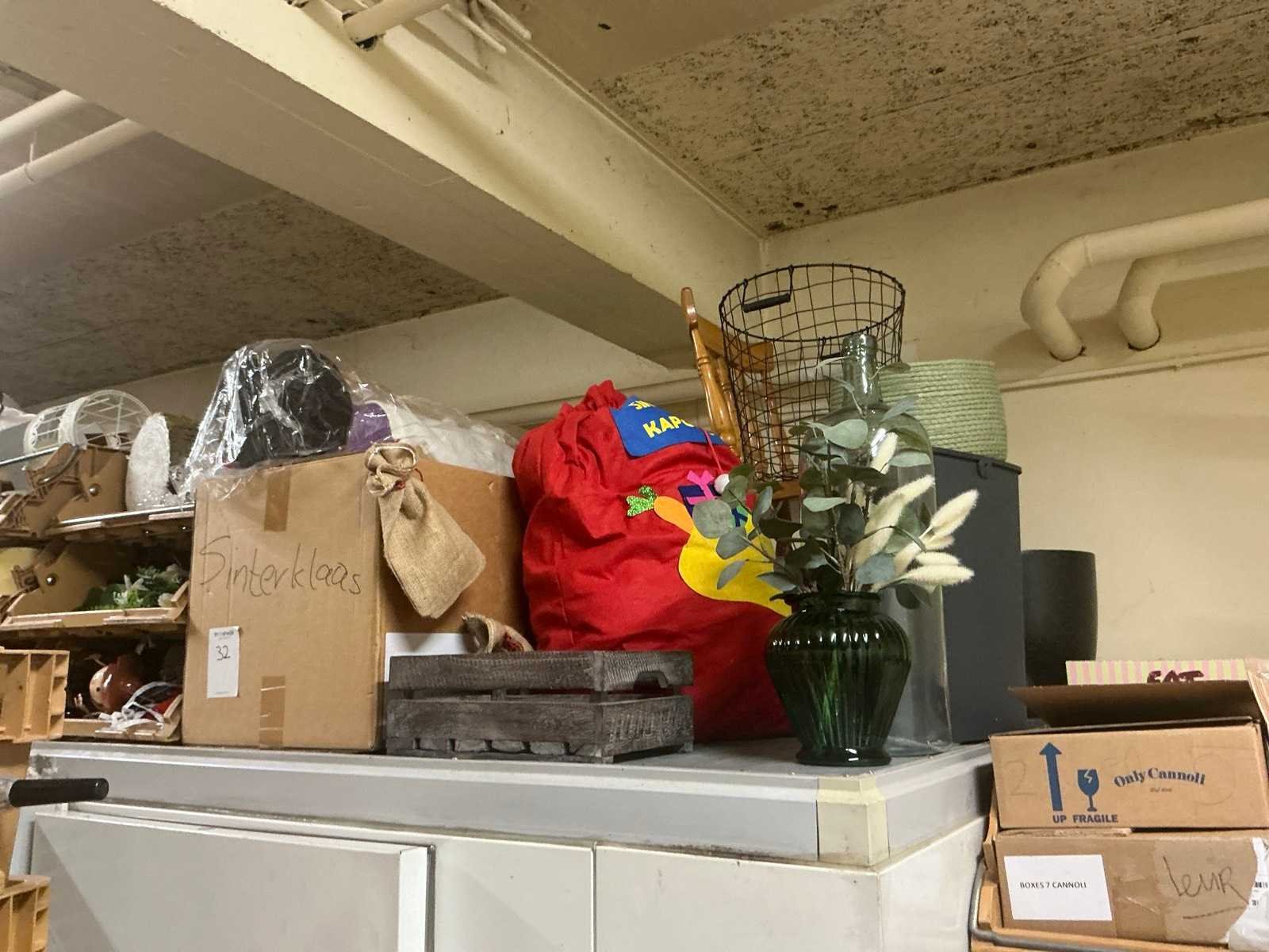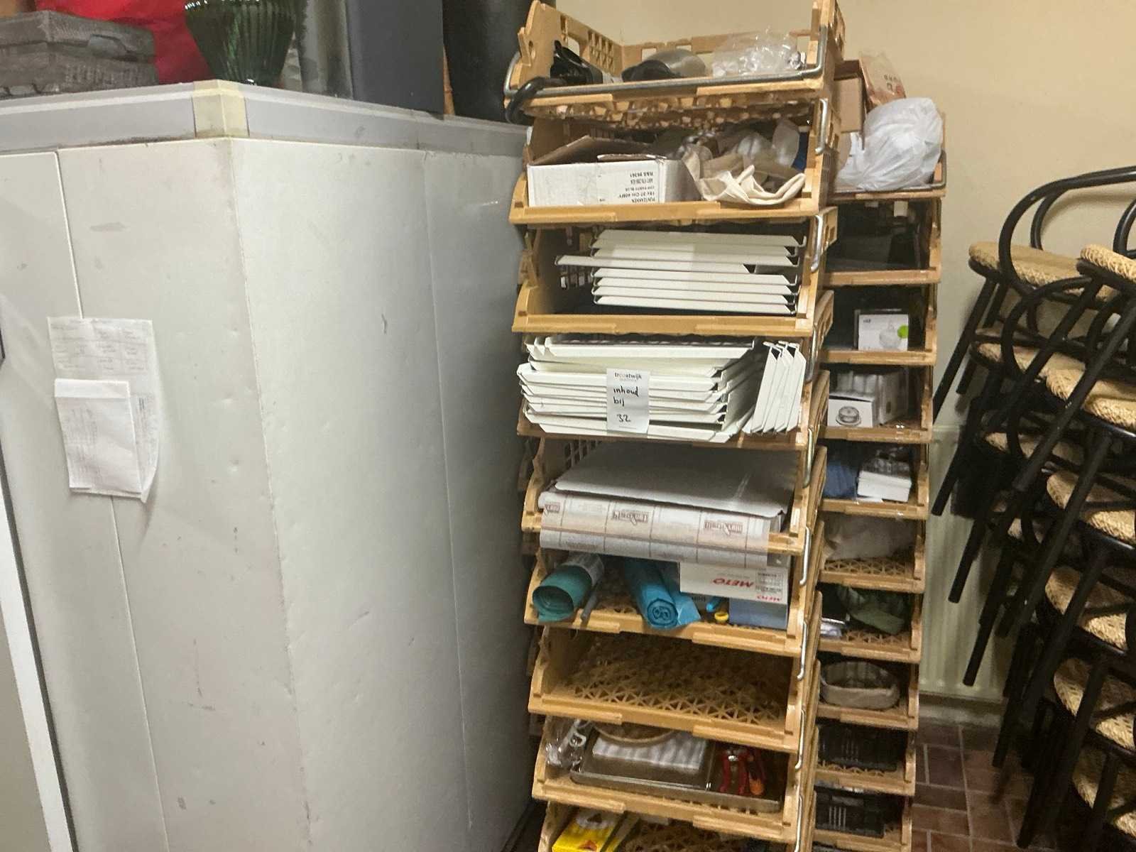 Inhoud op de koelcellen, werkbank, broodkratten; waaronder kerstdecoratie, , Let op! Zonder de broodkatten en werktafel