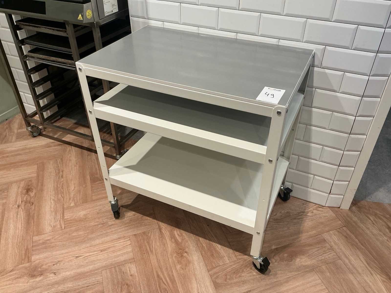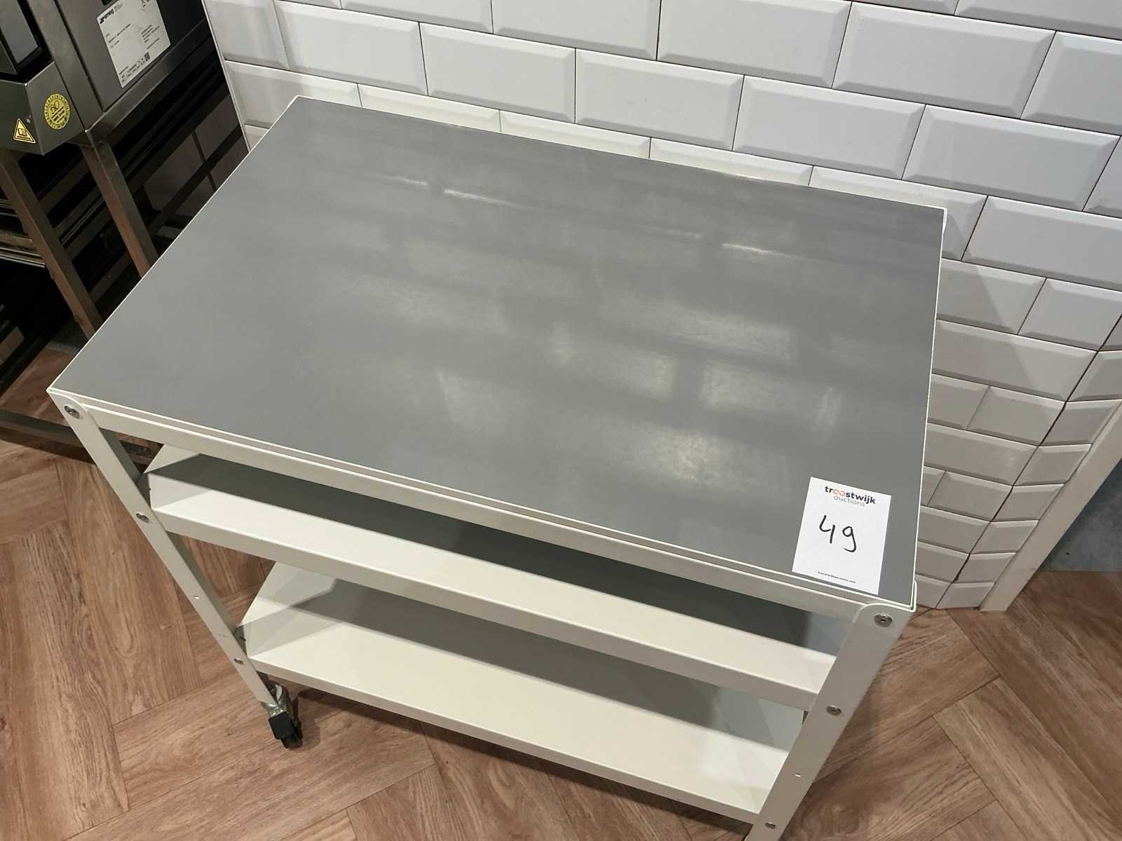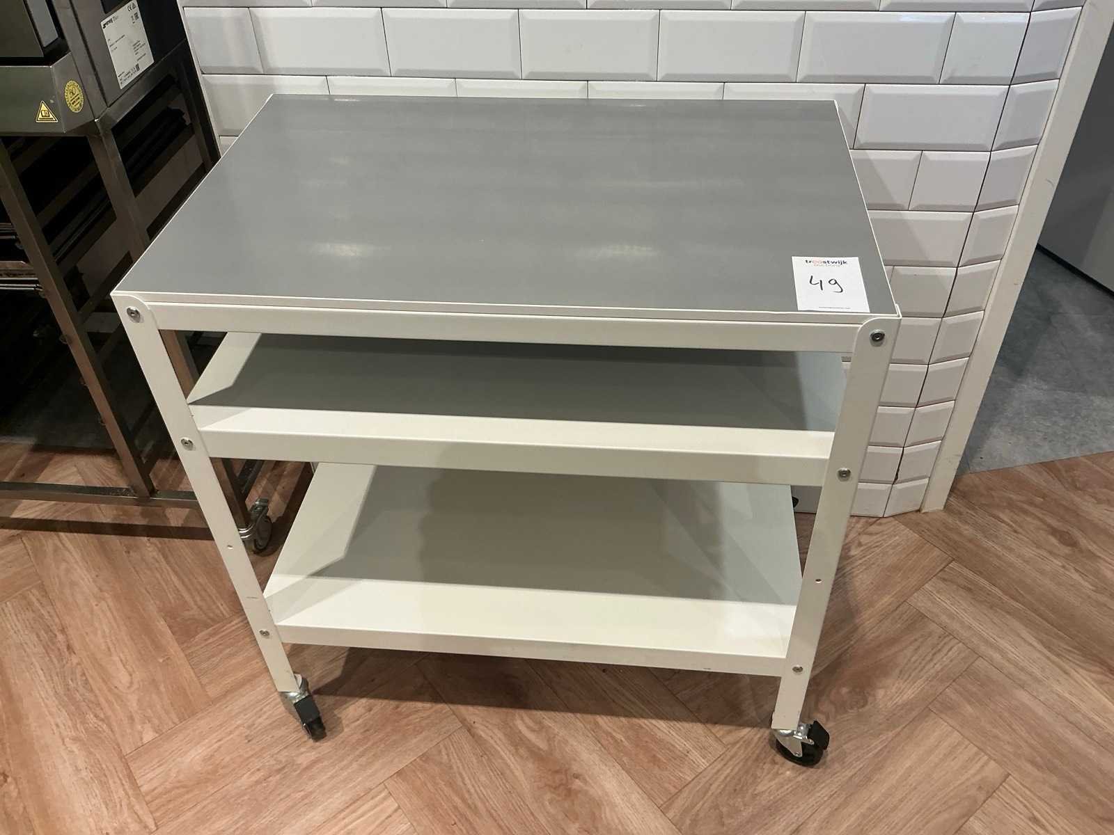 Voorzien van 3 plateaus, 4x zwenkwielen met rem Lengte: 840 Breedte: 540 Hoogte: 890