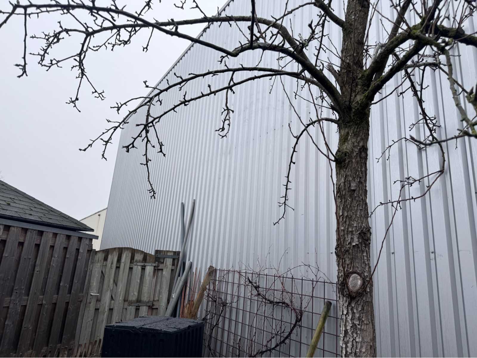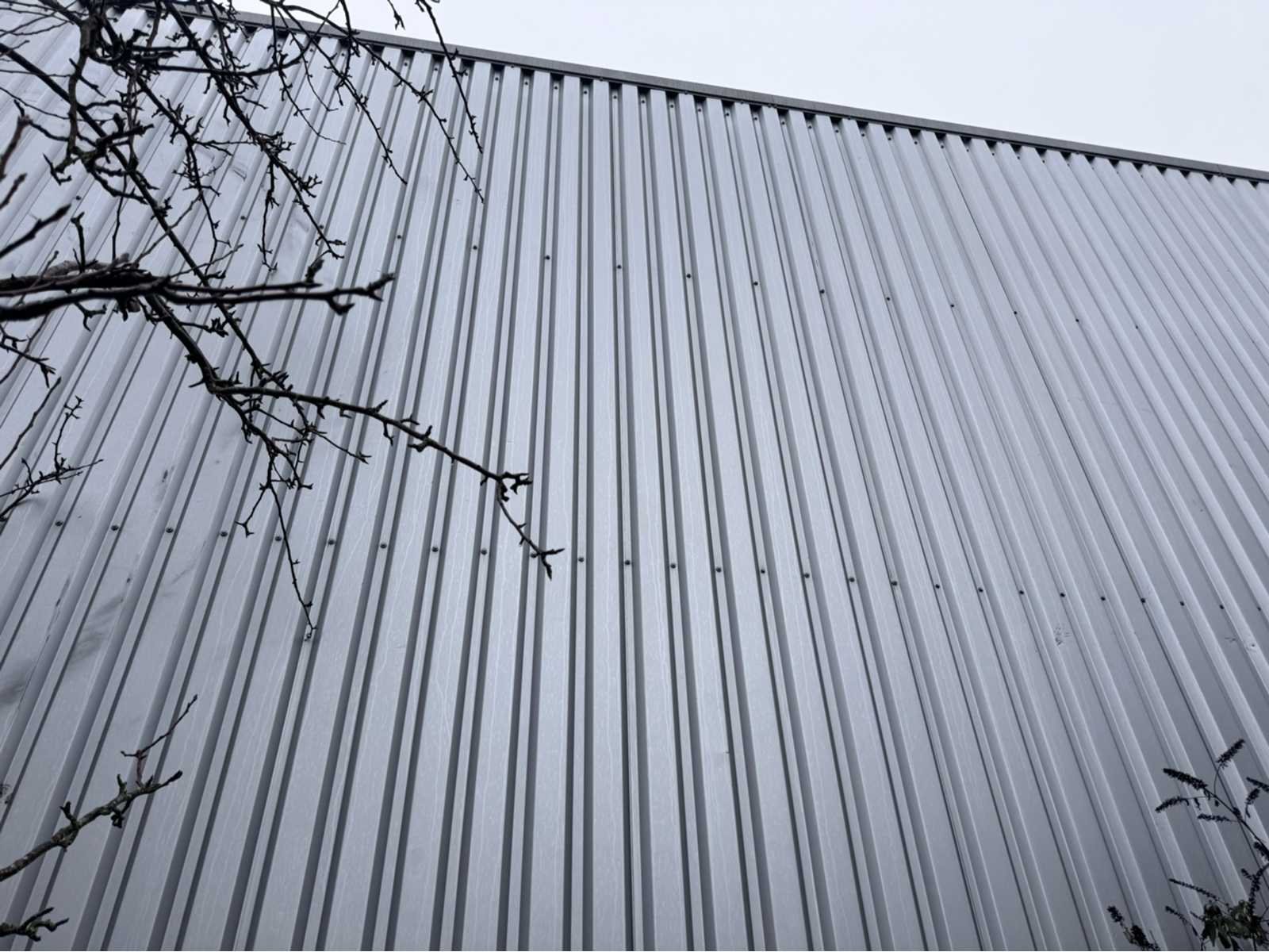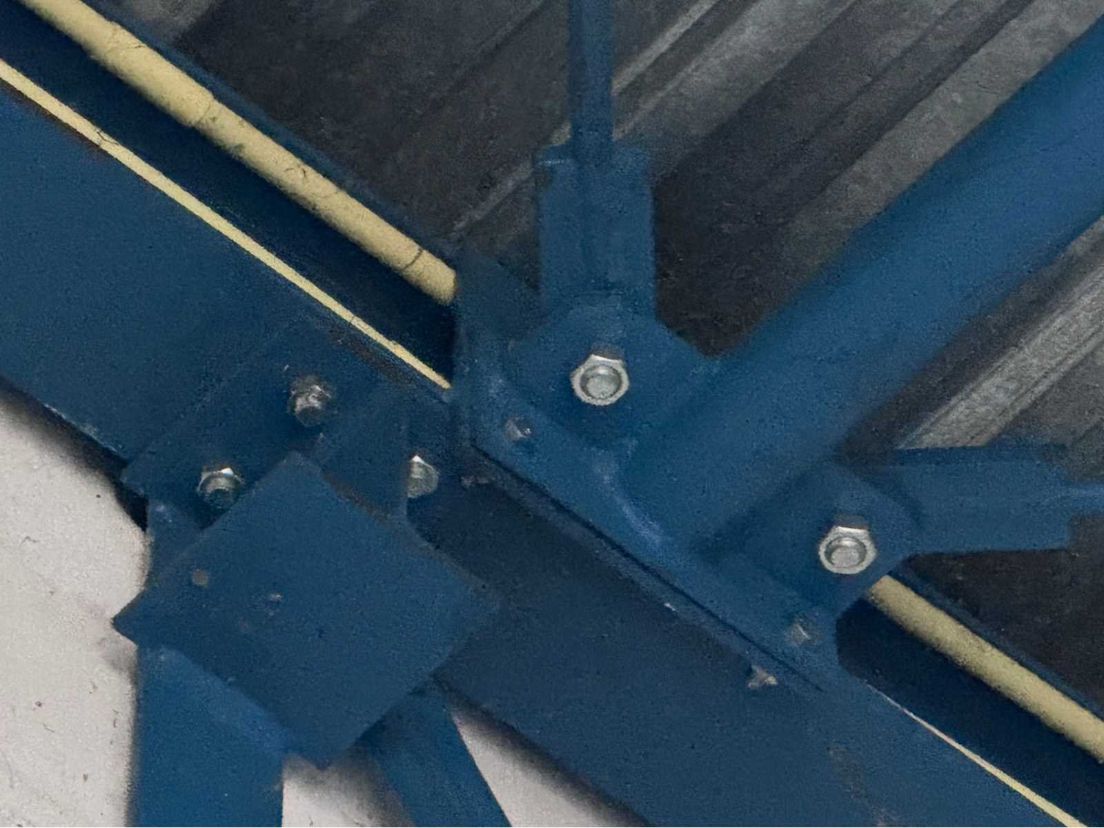 Vrije overspanning van 24400 mm; vakmaat ca. 5000 mm; constructie is blauw gecoat; staanders zijn IPE 220; spantbenen zijn IPE 550; constructie is voorzien van gevel schoren; dekschoren; drukbalken; voorgevel is bekleed met sandwich panelen; rechter zijgevel bekleed met sandwich panelen; achter gevel bekleed met damwand profiel platen; 1 zijgevel ontbreekt; zonder betonnen gevel beplating; dak is van stalen worm profiel platen; met isolatie; 1 schuifdeur van 5100 mm breed en 4470 mm hoog; 1 overheaddeur van 6040 mm breed en 4510 mm hoog; wordt gedemonteerd en transport klaar gemaakt door verkoper; kijkdag en afhalen volledig op afspraak; afhalen in omgeving Veenendaal; Nok hoogte: 6700mm Goot hoogte: 6700mm Totale afmeting L: 44800mm Totale afmeting Breedte: 24400mm