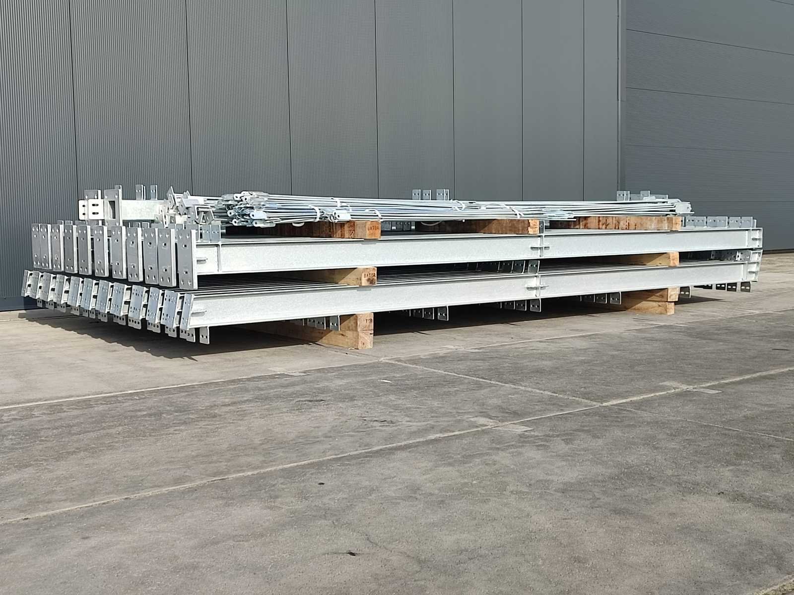 Ongebruikte staalconstructie; gegalvaniseerd staal; volblad verzinkt; IPE 160 onderbouw; constructie bestaat uit staanders en spanten; inclusief windverbanden/schoren; loods is transport klaar gemaakt Materiaal: Staal Bouwjaar: 2023 Totaal oppervlakte: 400m² Goot hoogte: 5000mm Totale afmeting L: 40000mm Totale afmeting Breedte: 10000mm