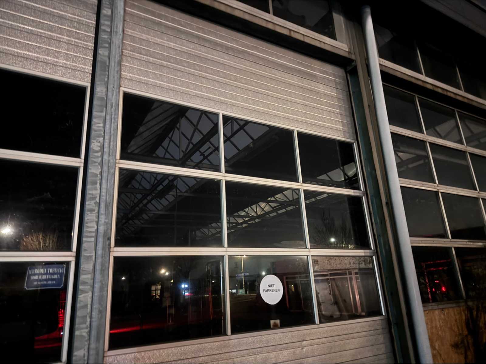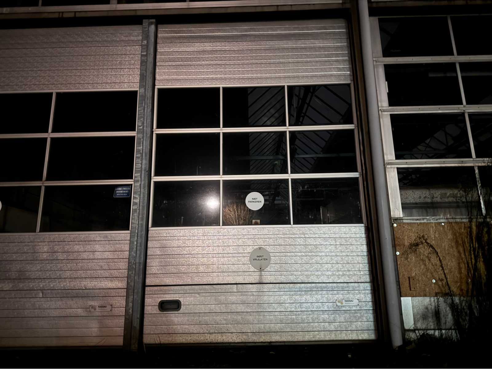 Deur bestaande uit aandrijfmotor; bedieningspaneel; railsen; deurpanelen en verenpakket; wordt door verkoper gedemonteerd en transport klaar gemaakt; afhalen op afspraak; Binnendeur: true Buitendeur: true Beglaasd: true Aluminium: true