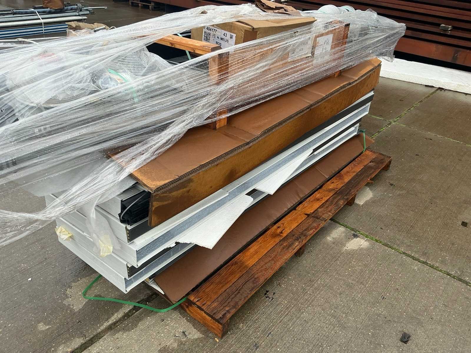 Compleet met deurpanelen van 80 mm dik; verenpakket; railsen; aandrijfmotor; montage materialen; bediening paneel Afmeting h: 3750mm Afmeting b: 2200mm