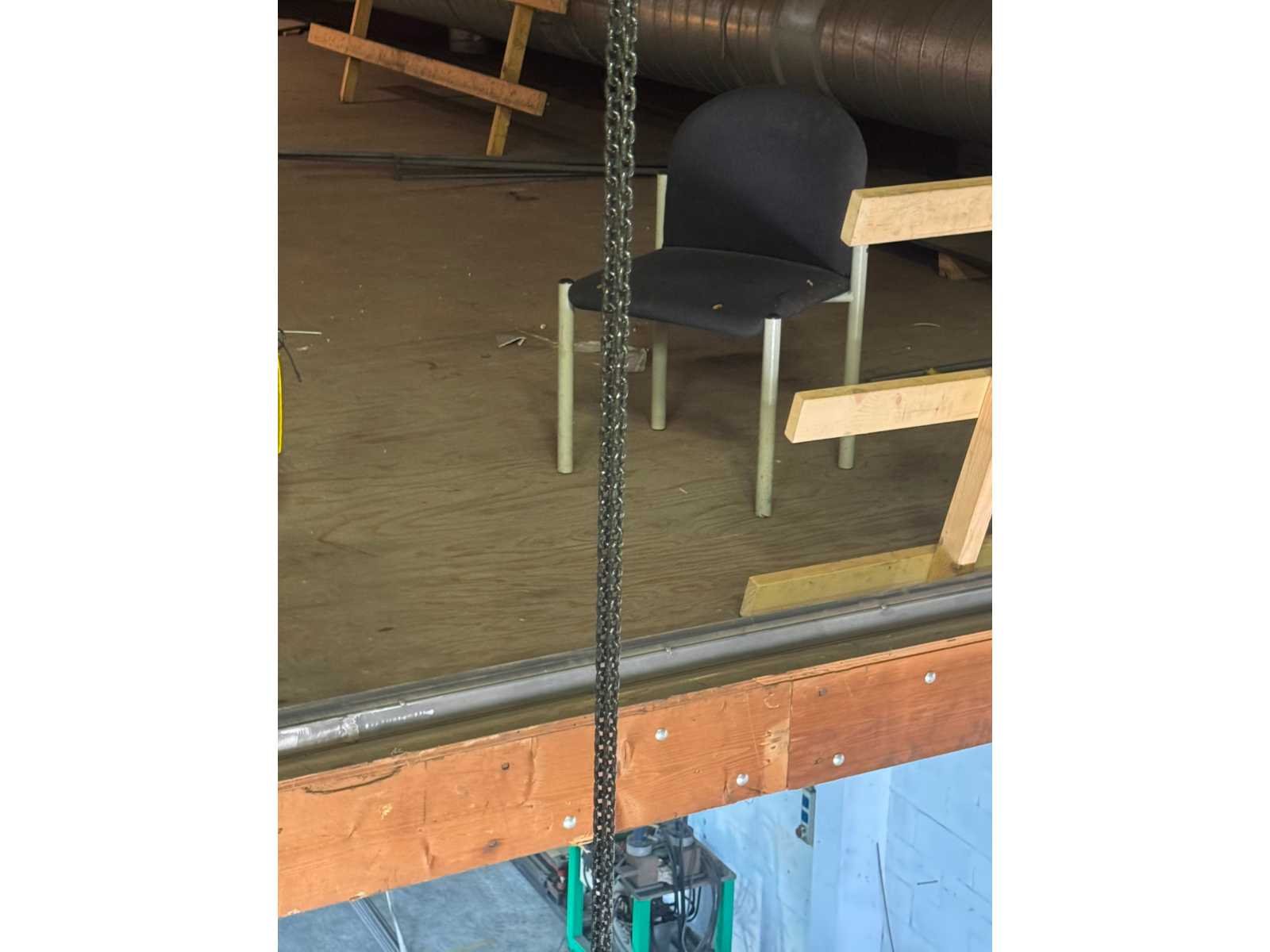 Elektrische kettingtakel; met afstandsbediening; wordt gedemonteerd en transport klaar gemaakt door verkoper; kijkdag en afhalen op afspraak; afhalen in overleg; maart; april 2026; kijkdag en afhalen is in Groot-Ammers Hijshoogte: 14000m