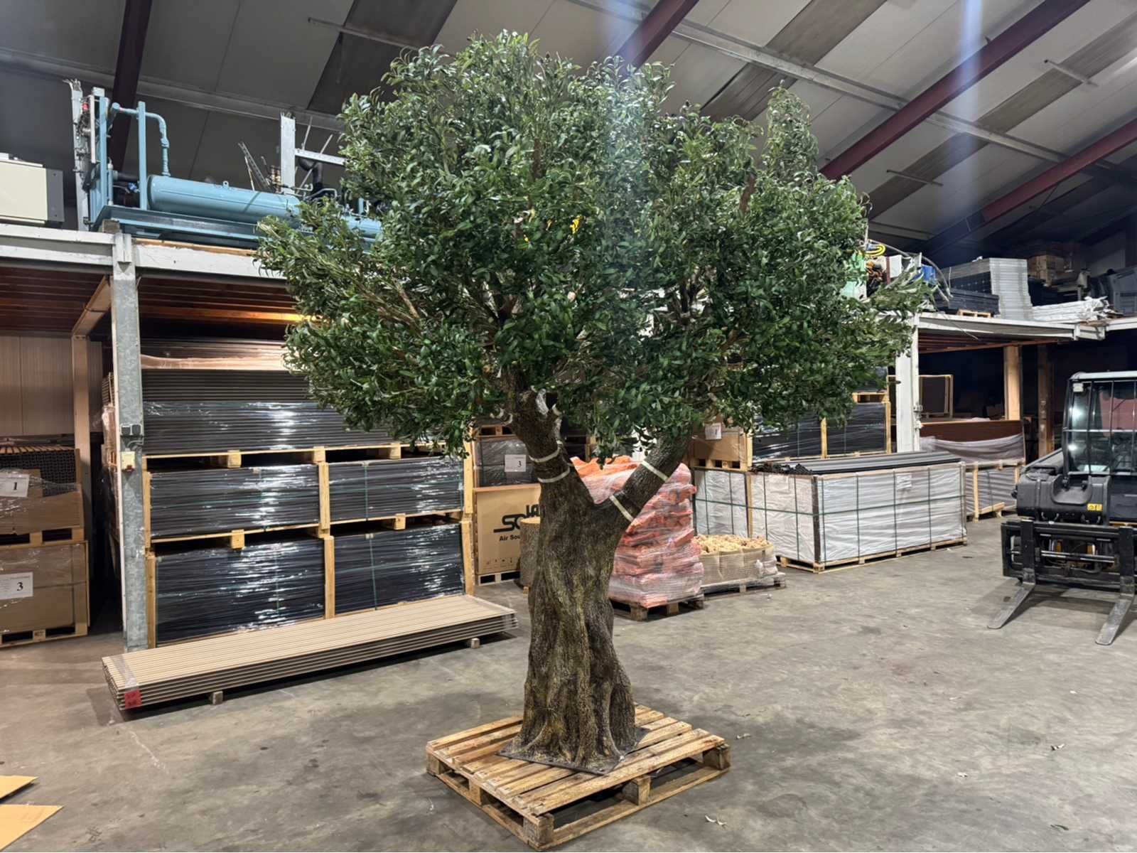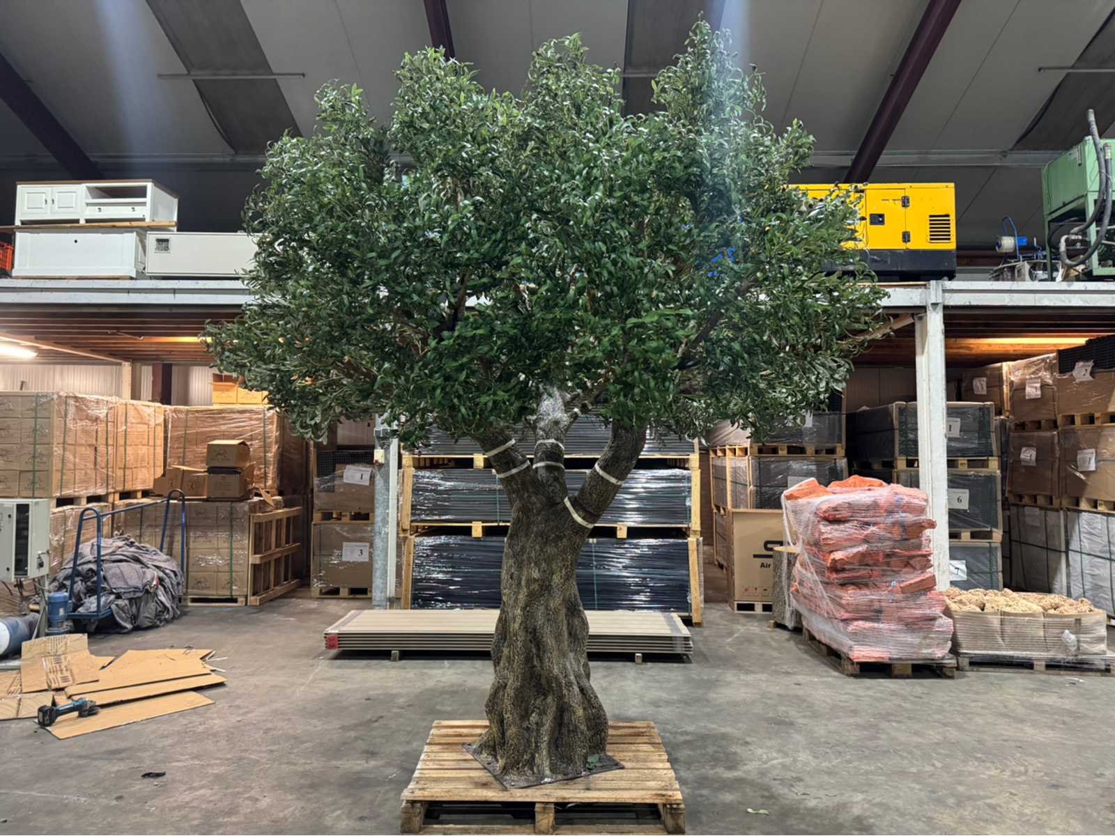 Diameter 320 cm; wordt gedemonteerd geleverd; eenvoudig in en uit elkaar te halen; ongebruikt Type: Olijf Kunstboom Product type: Olijf kunstboom Kleur: Groen Diameter ca.: 320 Hoogte: 350cm